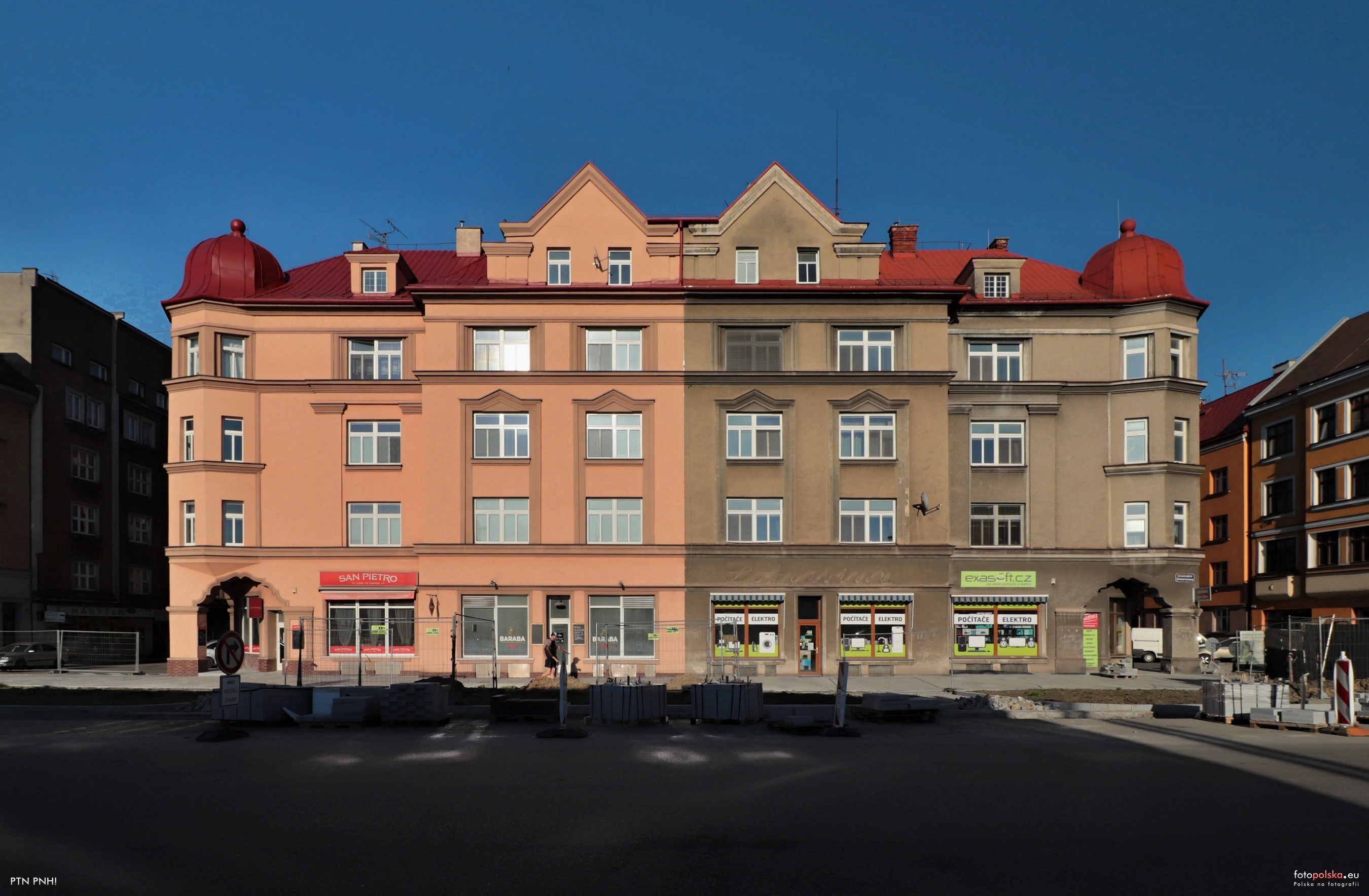 2 pobrania 429 odsłon 6 średnia ocen Poprzednie i następne zdjęcia vetinari Obiekty widoczne na zdjęciu Bezruča 38 więcej zdjęć (7) Zbudowano: 1925 Dawniej: Powszechne Towarzystwo Budowlane i Mieszkaniowe Narożna kamienica przypisana była do dzielnicy Kamieniec z numerem konskrypcyjnym 245. Numer posesji był podwójny. Dla ul. Dworcowej nr 14, zaś dla ul. Bezruča 32. Kamienica powstała w 1925 r. Inwestorem było Powszechne Towarzystwo Budowlane i Mieszkaniowe pracowników państwowych. Według planów Eduarda Davida zbudowała je firma Josef Nossek & Adolf Richter. Prace budowlane przebiegały również nocą (oświetlenie elektryczne), by zdążyć w terminie. W 1925 r. znajdował się tu zakład fryzjerski - damski Vladimira Navratila, galanteria Paula Matisska oraz drogeria z akcesoriami fotograficznymi Josefa Marka (w 1924 r. był w Orłowej), a także Občanska založna. W styczniu 1930 r. z piwnicy Marka skradziono 15 butelek wina z czego 5 butelek zostało wypite na miejscu w piwnicy. 1932 księgarnia, artykuły papiernicze, płyty muzyczne gramofony Teofil Jelinek ul. Bezruča (Bezručova) więcej zdjęć (140) Ulica otrzymała swoją nazwę w lipcu 1898 r. i przypisana była do dzielnicy Kamieniec. Jej pierwotna nazwa brzmiała Isabellastraße. W latach 1920 - 1938 przemianowana na ul. Bezruča. W 1938 - 1939 nosiła nazwę ul. Chopina. W 1939 - 1945 ul. Ludendorffa. Od 1945 aż po współczesność ponownie ul. Bezruča. Marzec 1936 (Dwa publiczne zegary) będą postawione w najkrótszym czasie na miej- scach publicznych. Znana powszechnie firma Gustawa Pollaka, skład sukna, wywiesi obok własnego domu na zbiegu ulicy Dworco- wej i Saskiej Kępy wielki zegar publiczny. Pewna praska firma postawi przed dworcem kolejowym naprzeciw ul. Bezruća, obok skła- du „Sbor" 4 m wysoki kiosk reklamowy. U szczytu tegoż czworobocznego kiosku umie- szczony będzie zegar, widzialny ze wszystkich stron. Oba te zegary będ.ą i w nocy oświe- tlone. Rada miejska uchwaliła, że miasto 'dla obu zegarów dostarczać będzie prądu elektr. bezpłatnie. Z kół obywatelskich czę- ściej już domagano się postawienia zega- rów na miejscach publicznych, tern więcej, że zegar, stojący dawniej naprzeciwko „De- mellochu" znikł. Też i zegar na czesk. szko- łach, który od dłuższego czasu nie był w ruchu, ma być naprawiony i miasto rów- nież i tam dostarczać będzie bezpłatnie prą- du elektr. na oświetlanie w nocy. |