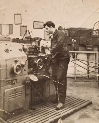 1956 , Na stanowisku pracy przy tokarce.Skomentuj zdjęcie