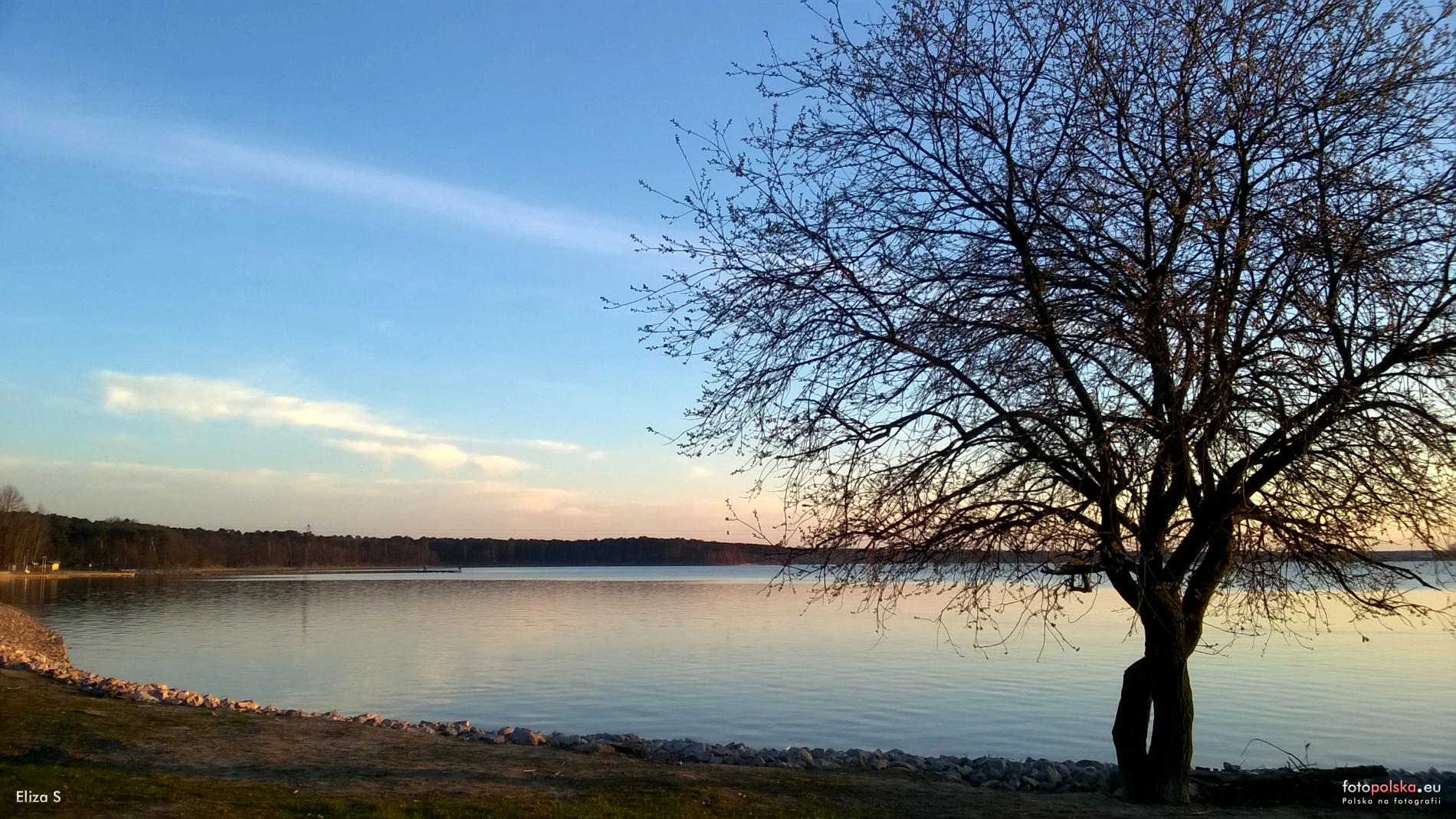 23 marca 2016 , Zalew Zemborzycki od strony ul. Osmolickiej. Widoczne umocnienie linii brzegowej solidną warstwą kamieni.