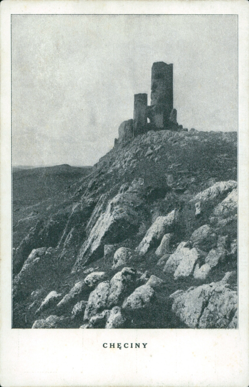 1915 , Ruiny zamku w Chęcinach na pocztówce wydanej przez Polskie Towarzystwo Krajoznawcze, z nadrukowaną datą 22/IV 1916.Skomentuj zdjęcie |