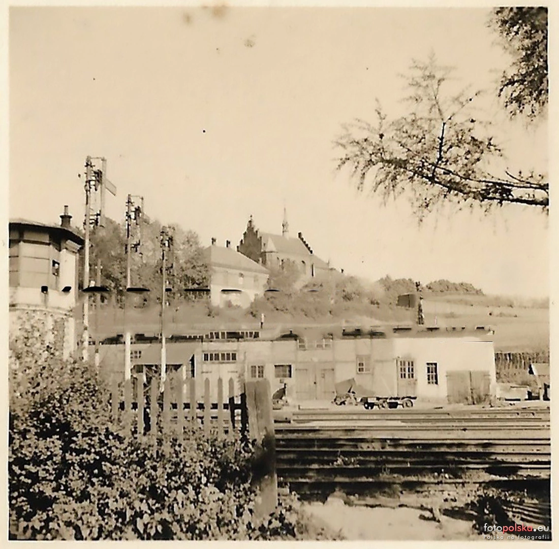 wrzesień 1939 , Miasto ze stacją kolejowa, dość spora ta stacja, aż trzy semafory wyjazdowe. Widok z obecnej ul. Metzgera na klasztor w Jaśle.Skomentuj zdjęcie