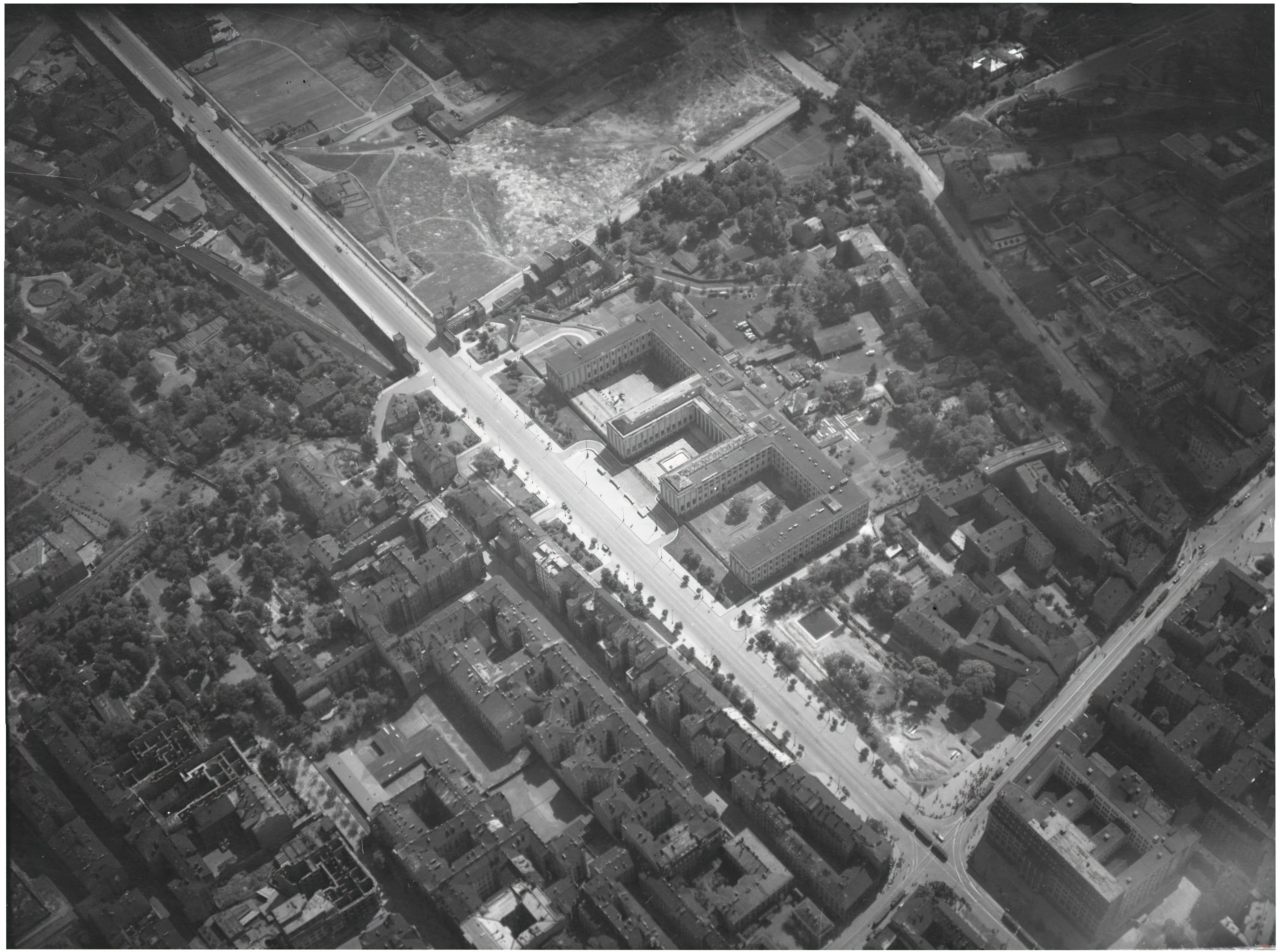151 pobrań 11772 odsłony 5.97 średnia ocen Poprzednie i następne zdjęcia fck Obiekty widoczne na zdjęciu Zdjęcia lotnicze więcej zdjęć (813) ul. Aleje Jerozolimskie więcej zdjęć (1127) Dawniej: Bahnhofstraße (1941–1943) Aleje Jerozolimskie – jedna z największych i najważniejszych arterii Warszawy przebiegająca przez Śródmieście, Ochotę, Włochy, Wolę i Ursus, biegnąca od Wisłostrady (Mostu Poniatowskiego) do granic miasta przy skrzyżowaniu z ul. Bodycha i ul. Sosnkowskiego. Jej długość to niemal 12 kilometrów. W różnych okresach swego istnienia ulica nosiła nazwy Droga Jerozolimska, Ulica Jerozolimska, Aleja Jerozolimska, Bahnhofstraße (Dworcowa), odcinkami również aleja 3 Maja, Reichstraße (Rzeszy), Ostlandstraße (Ziem Wschodnich) oraz aleja Sikorskiego. Więcej: |