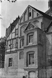 Budynek przyległy wschodnią fasadą do ul. Kazimierza Wielkiego wzniesiono prawdopodobnie w końcu XIV wieku. Początkowo było on siedzibą nowo założonej szkoły Schola Gloriosæ Mariæ Virginis. Po wprowadzeniu reformacji mieściły się tu kolejno: diakonat, mieszkanie organisty, a w 1938 wykupiony został przez władze miasta na siedzibę Muzeum Regionalnego. Dekorację domu stanowią skromne blendy, w których umieszczono prostokątne okna. Ryglowe szczyty pochodzą z XIX wieku, pierwotnie posiadały zapewne gotycki wystrój.