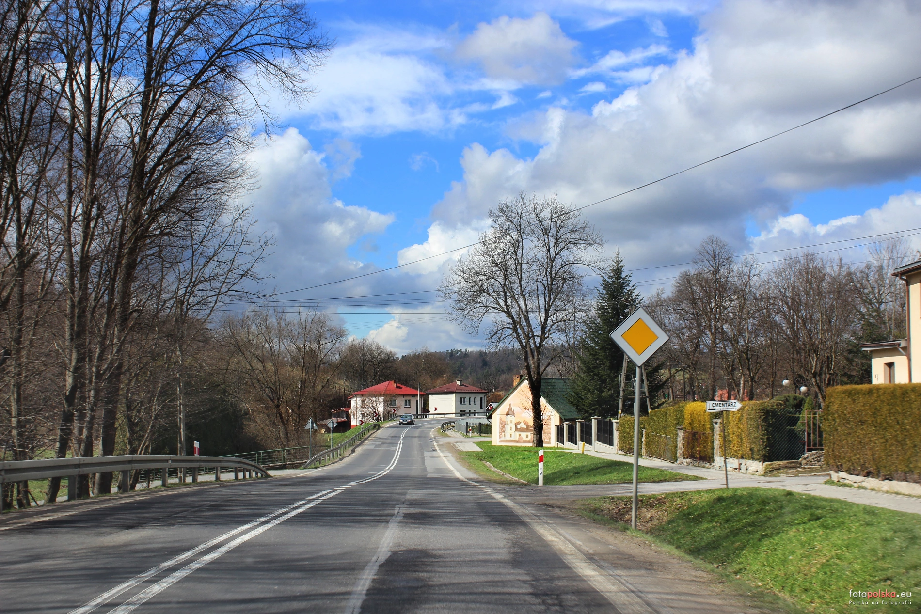 1 kwietnia 2023 , Olszanica. Mała Pętla Bieszczdzka. Fragment zabudowy przy DK84, w głębi widoczne budynki 214 i 215, po prawej domek dozorcy. Ujęcie w kierunku zachodnim.Skomentuj zdjęcie