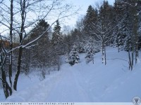luty 2005 , Fragment głównej drogi prowadzącej przez wieś. Niegdyś w miejscu widocznego lasu stały domy. Jeszcze na pocz. lat 70-tych wieś liczyła ponad 200 mieszkańców, obecnie składa się z ok. 10 domów rozrzuconych na przestrzeni 2-3 kilometrów.Skomentuj zdjęcie |