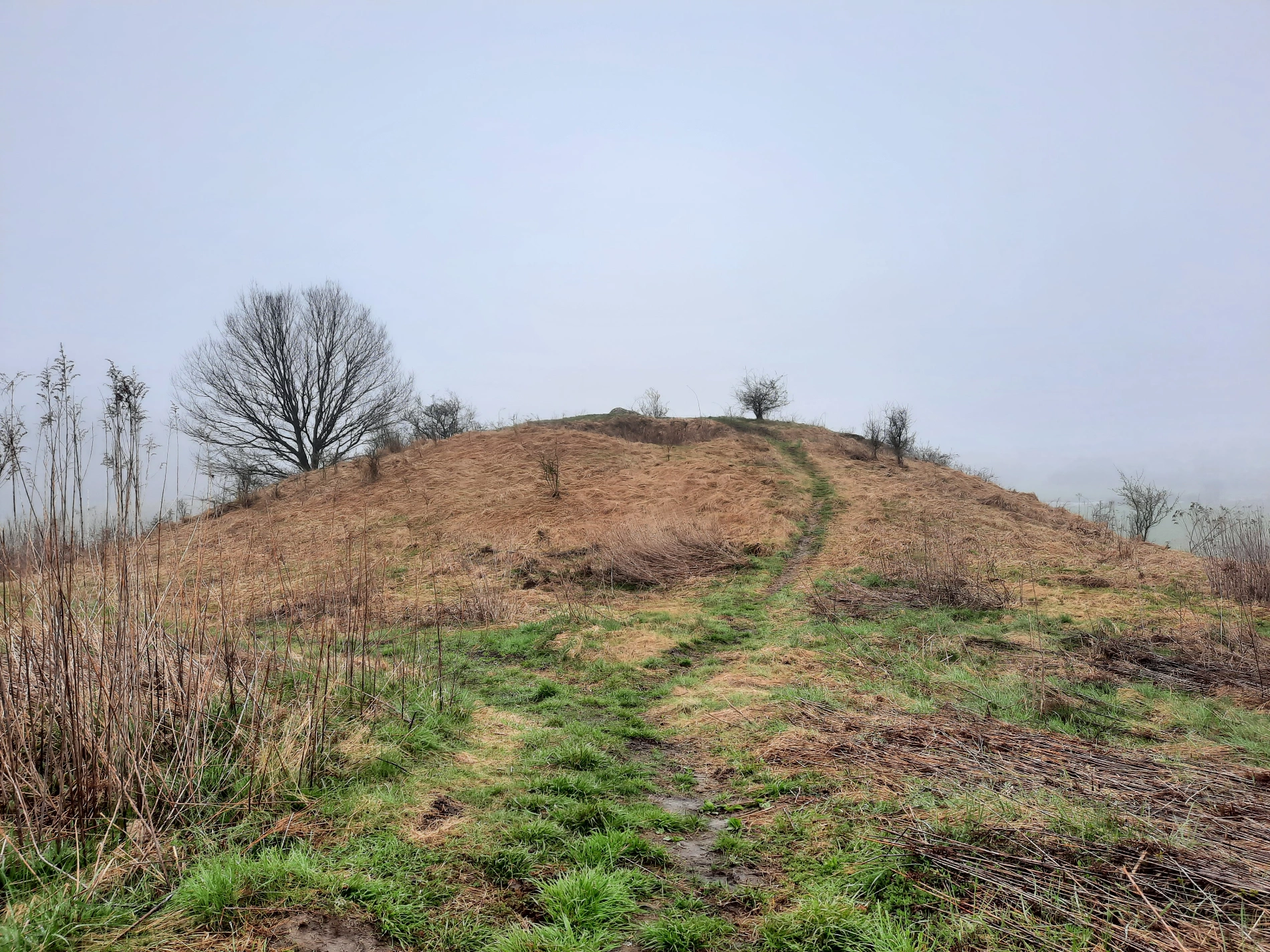 10 kwietnia 2023 , Grodzisko w Piekarach. Szczytowy kopiec z kolistym zagłębieniem po dawnej wieżySkomentuj zdjęcie |