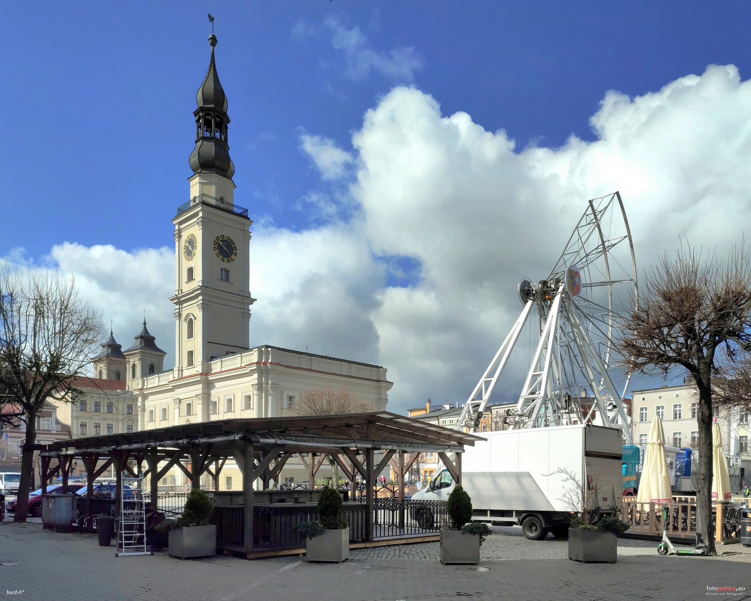 12 kwietnia 2023 , Montaż diabelskiego młyna na Rynku.