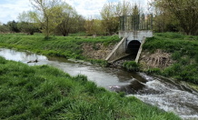 22 kwietnia 2023 , Rzeka Czerniejówka (Lublin). Betonowa obudowa zrzutu ścieków do rzeki z żelazną balustradą ochronną w obrębie stacji wodociągowej Dziesiąta.Skomentuj zdjęcie |