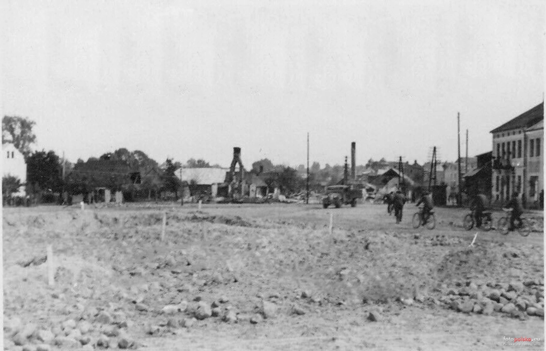wrzesień 1939 , Zdjęcie wykonane przed 21 września, ponieważ na horyzoncie widoczne są wieżyczki całej jeszcze synagogi.Skomentuj zdjęcie |