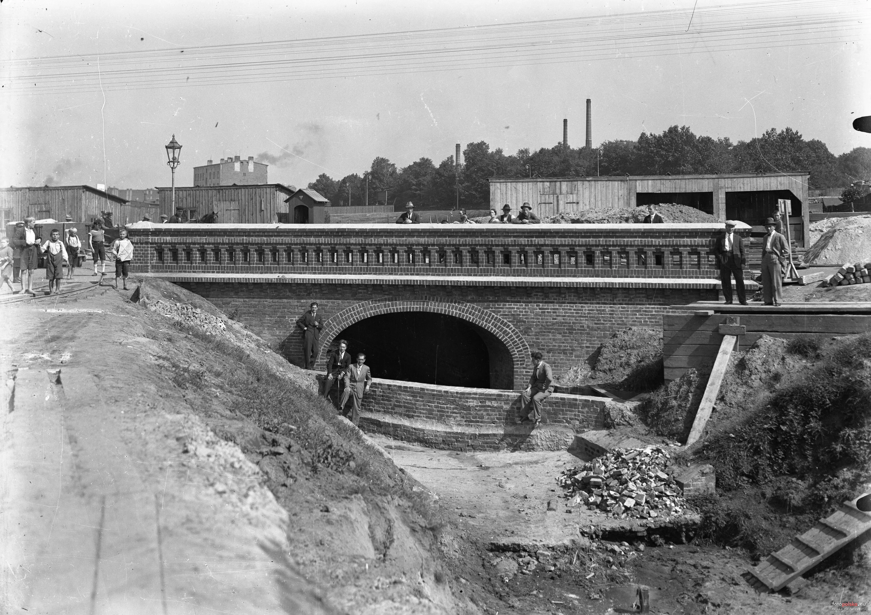Lata 1920-1935 , Most na Dąbrówce na ul. Wólczańskiej, w tle budynek na ul. Pabianickiej 1, mat. ZWiK .Skomentuj zdjęcie |