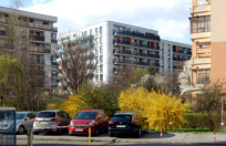 13 kwietnia 2023 , Narożnik bloku na Skalskiego 1 wyłaniający się pomiędzy blokami na Rogalskiego 10 i 12.Skomentuj zdjęcie |