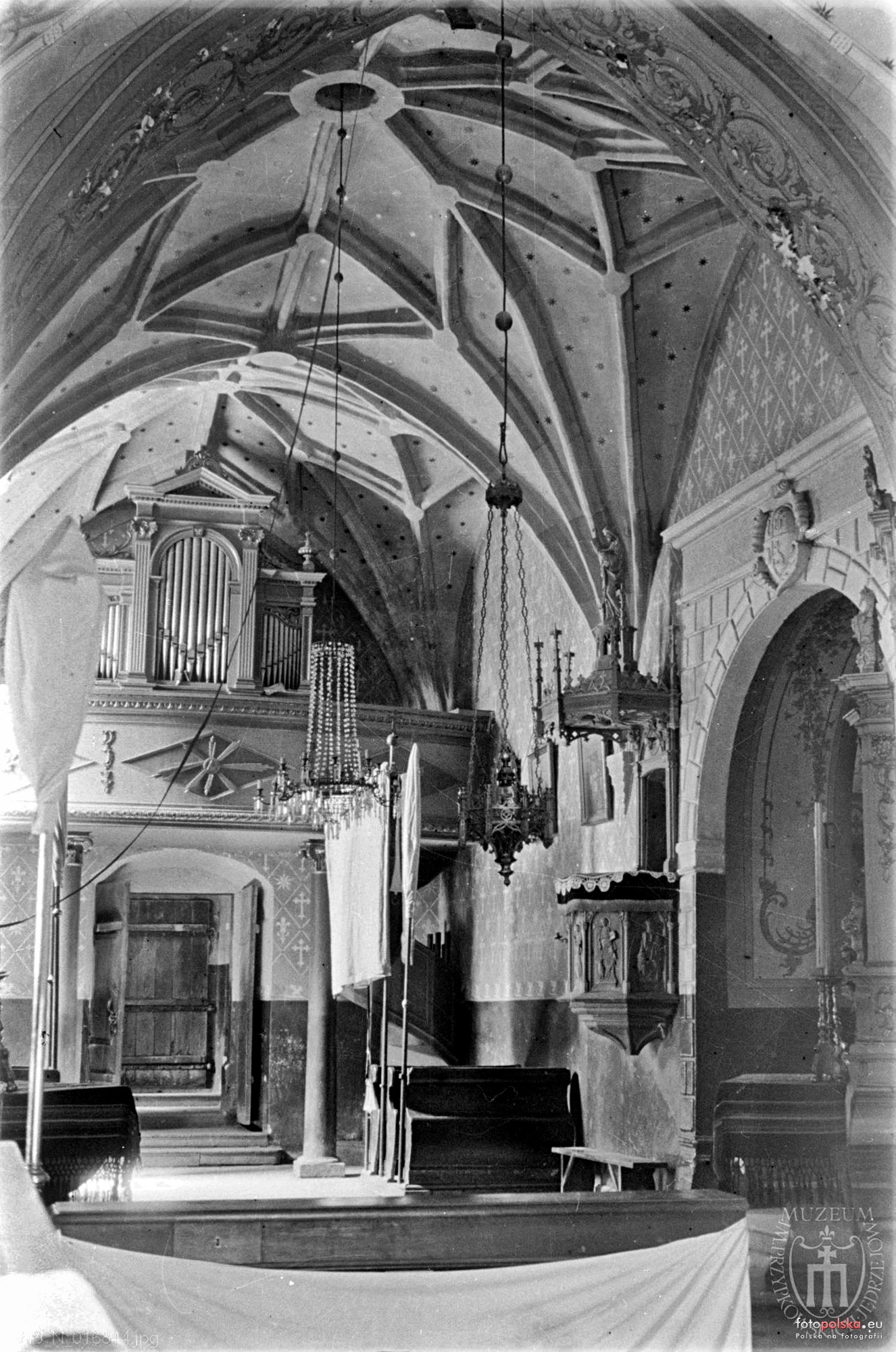 styczeń 1940 , Kościół św. Piotra i Pawła. Nawa główna, widok w stronę chóru.Skomentuj zdjęcie |