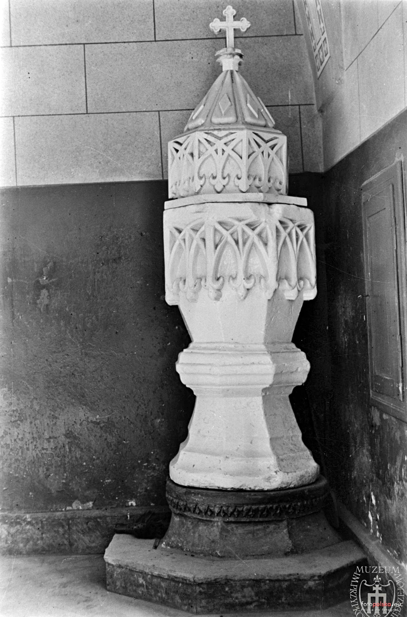 styczeń 1940 , Kamienna chrzcielnica z XVIIw.Skomentuj zdjęcie |