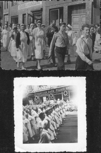 1937 , Prawdopodobnie uczestnicy Sportfestu. Dolne zdjęcie : Hanf75°: Jeśli chodzi o dolne zdjęcie, jest to róg Świdnickiej i Piłsudskiego Według AB37 Deposittenkassen Neue Schweidnitzer str. 5/ Gartenstr. .Skomentuj zdjęcie