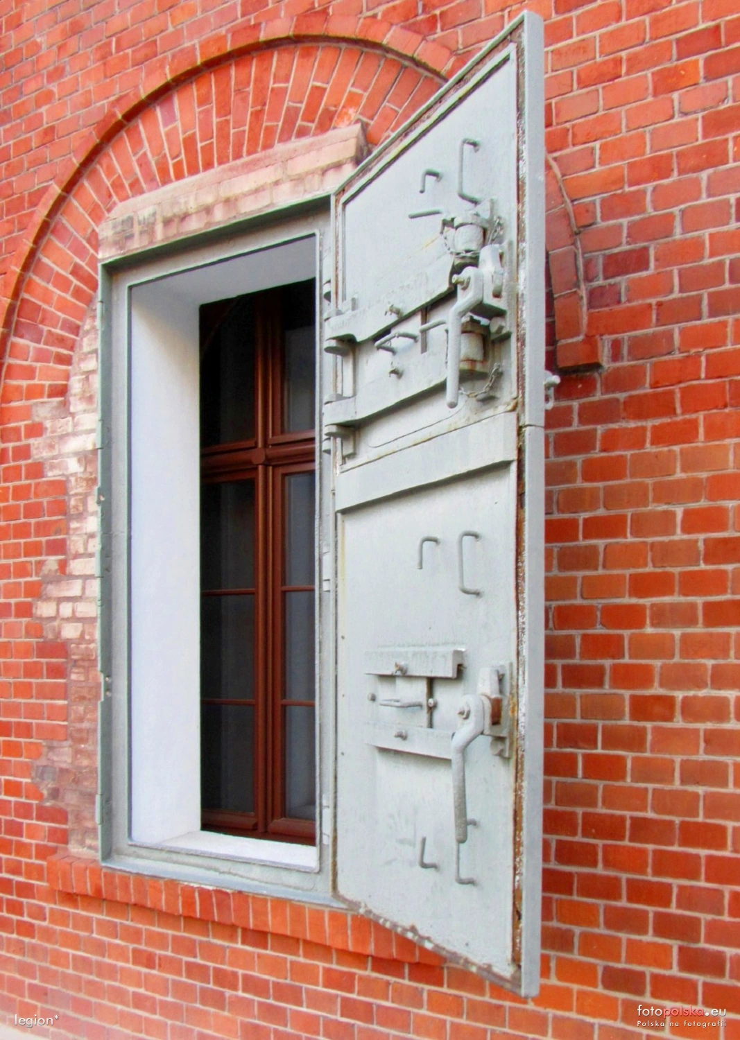 13 maja 2023 , Koszary Bramy Chełmińskiej - wtórnie wmurowane drzwi pancerne w budynku koszar.Skomentuj zdjęcie