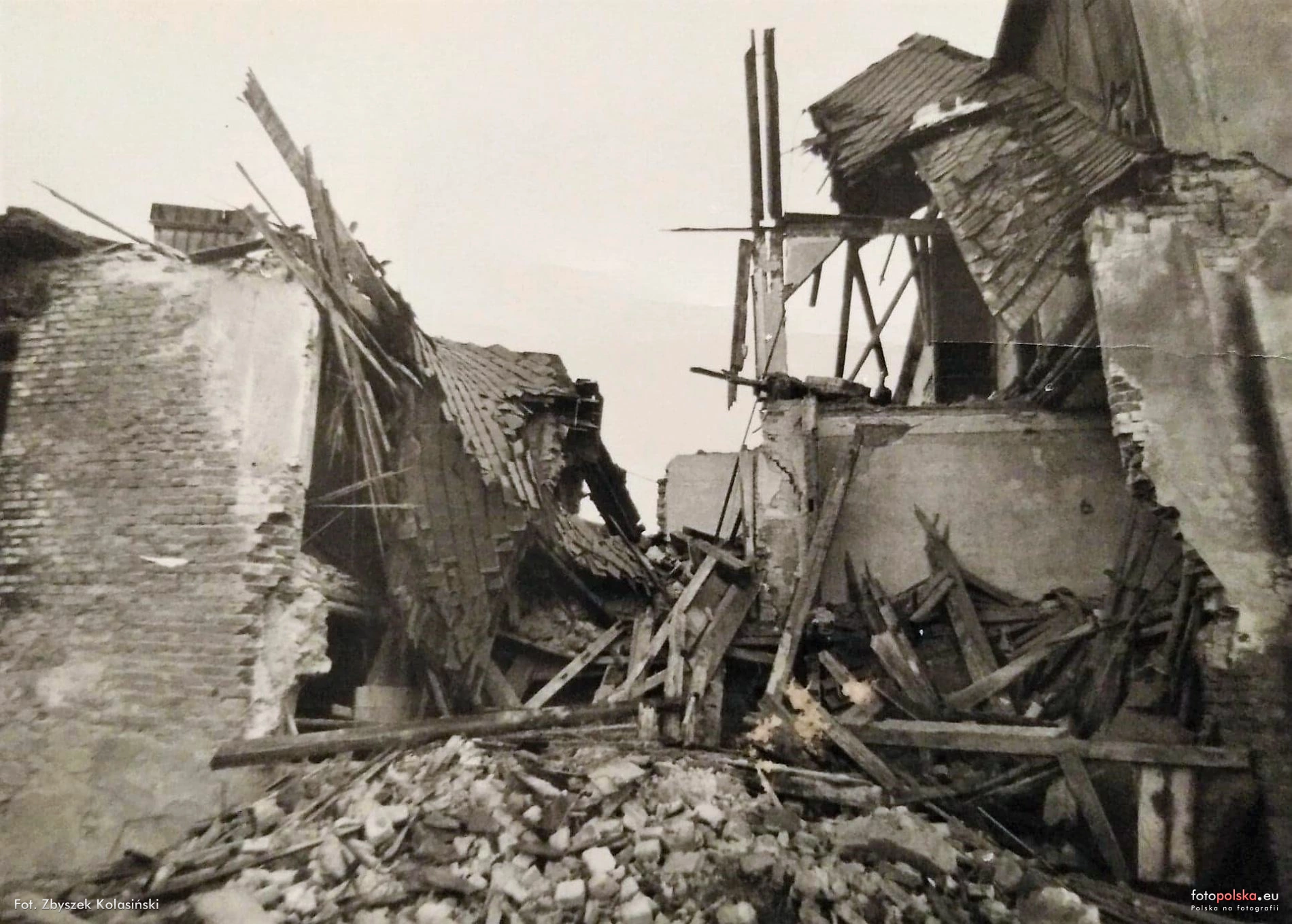 1977 , Rozbiórka nieistniejącej, pokrytej dachem dwuspadowym części budynku przy Źródlanej 7-8 w Kowarach widocznej po lewej na widokówce: |