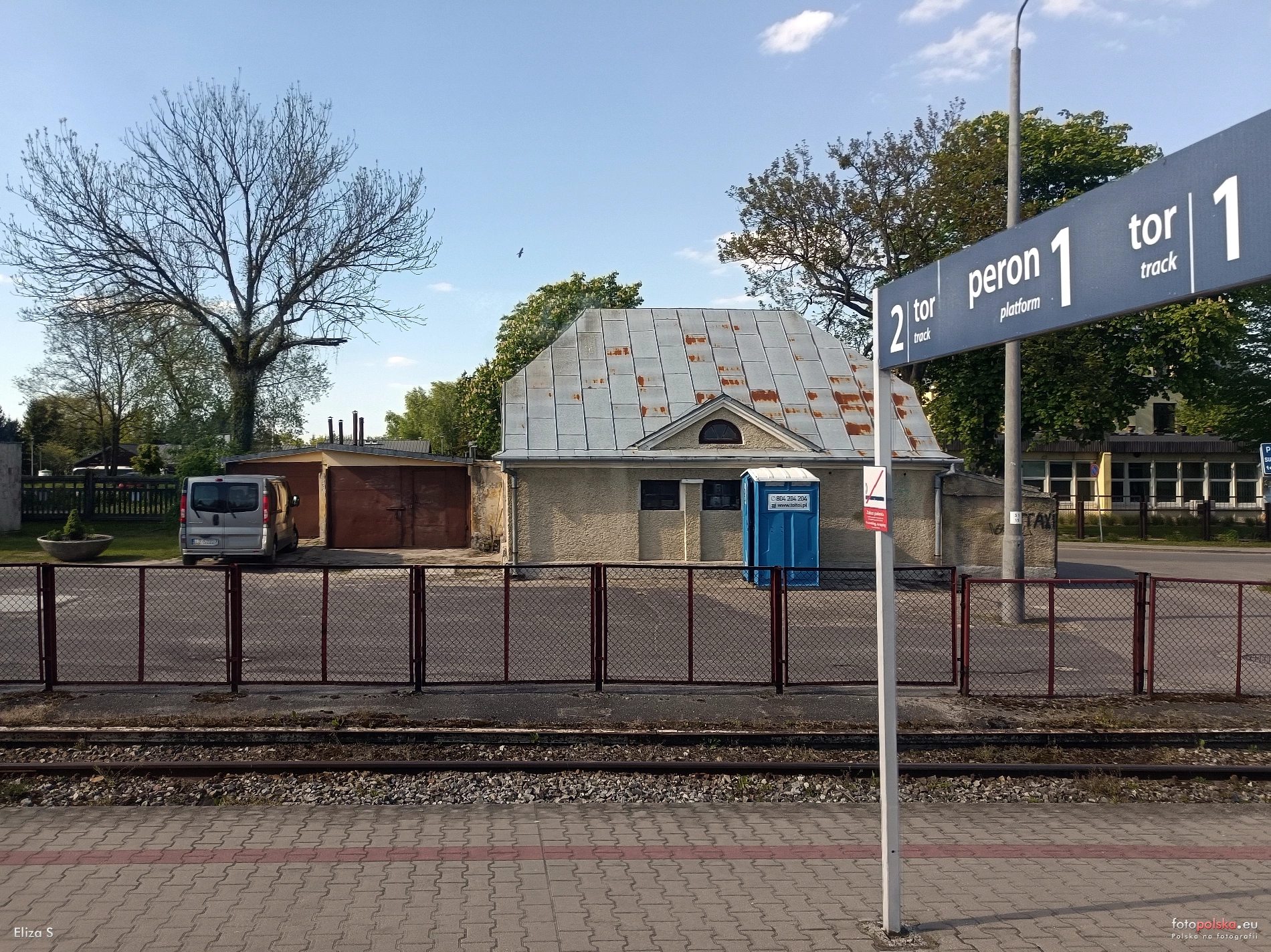 11 maja 2023 , Zamość, Stacja kolejowa Zamość. Ubikacje w głębi kadru i fragment peronu 1 z tablicą.Skomentuj zdjęcie |