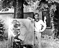 1974 , Krzysztof Bucki (1936 – 1983, artysta malarz, pedagog, laureat Nagrody im. Jana Cybisa), przed budynkiem muzeum z jednym ze swoich obrazów. Ze stronySkomentuj zdjęcie |