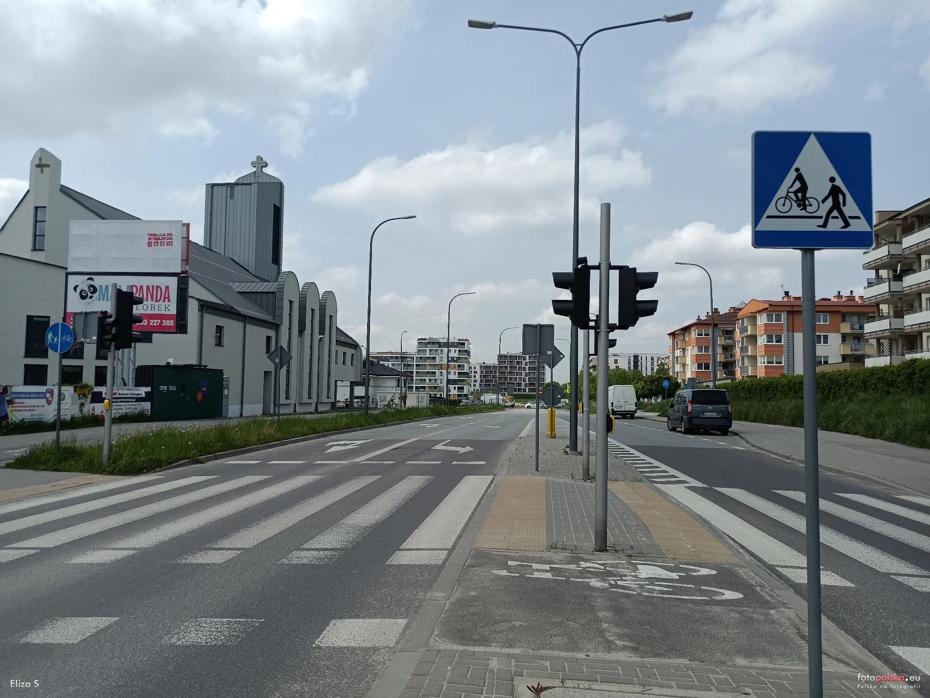 20 maja 2023 , Węglin Południowy. Ulica Berylowa w obrębie skrzyżowania z ul. Jantarową, widok w kierunku ul. Granatowej. Z lewej Kościół św. Jana Kantego.Skomentuj zdjęcie |