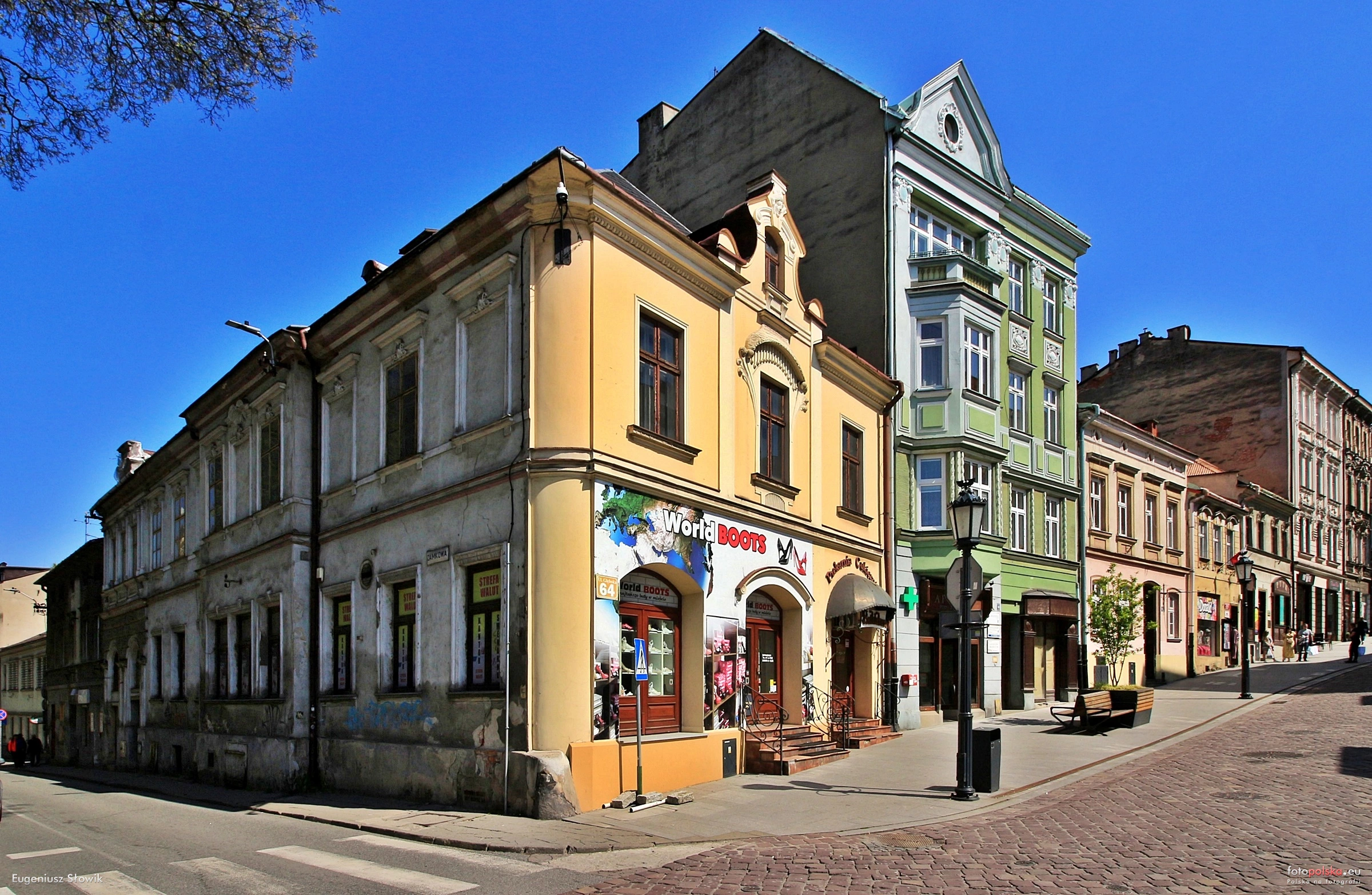 3 pobrania 438 odsłon 6 średnia ocen Poprzednie i następne zdjęcia Eugeniusz S. Obiekty widoczne na zdjęciu Głęboka 64 więcej zdjęć (31) Zbudowano: Przed 1874 Dawniej: Kamienica Laurenza Jurnitscheka Narożna kamienica przypisana była do dzielnicy Miasto z numerem konskrypcyjnym 227. Numer posesji był podwójny, dla ówczesnej ul. Schlossgasse był to nr 10, zaś dla Kronprinzessin Stephaniestraße nr 68 (numery przypisano w 1892 r.). Obiekt potocznie nazywany "na Kajzarowcu" notowany jest od najstarszej Książki Adresowej Cieszyna z 1874 r., gdzie ówczesnym właścicielem był Laurenz Jurnitschek (pisany też Jurniczek). Od około 1881 r. obiekt przeszedł na własność Caroliny i Ottilii Jurnitschek. Do ponownej zmiany doszło przed 1894 r., kiedy nabyta została przez Adama Siwego. W 1905 r. kamienica należała do Adama i Anny Siwych a od mniej więcej 1913 r. do Anny Siwej - spadkobierca. Ostatnią zmianą jaką odnotowuje książka adresowa pochodzi z 1926 r., wtedy należała do Zuzanny i Jana Kiedroniów (w tym okresie zmieniono nr posesji na 64). W budynku od samego początku znajdował się szynk i restauracja, który często zmieniał swego dzierżawcę. W 1874 r. Salomon Ripper, 1877 r. Josef Glesinger, 1886 r. Josef Filipp, 1894 r. Adam Siwy, 1905 r. Josef Kubisch, 1914 r. Rudolf Buchta junior, 1926 r. Andrzej Kłapsia. W okresie PRLu funkcjonowała tu restauracja kategorii I "Zamkowa". Zamkowa 10 więcej zdjęć (17) ul. Głęboka więcej zdjęć (1296) Dawniej: Kronprinzessin Stephaniestr. + Erzherzog Karlstr., Legionów, Armii Czerwonej Główna arteria starego Cieszyna, prowadzi od Góry Zamkowej do Rynku, niegdyś najważniejszy trakt handlowy miasta. Pierwotnie zabudowana domami podcieniowymi połączonymi systemem tarasów i schodów, ucierpiała podczas pożaru w 1789 r. - zachowało się kilka kamienic podcieniowych z przełomu XVIII i XIX w. W XIX i XX w. zabudowana kamienicami mieszczańskimi w stylu historycznym i eklektycznym. Głęboka to nazwa-bumerang. Jakby nie nazywano ulicy, to wracano do starej nazwy. A była to kiedyś ulica Arcyksiężniczki Stefanii, synowej cesarza Franciszka Józefa. W czasie I wojny światowej nazywana była Karl Franz Josef-Strasse. W 1920 roku wrócono do Głębokiej, ale czternaście lat później uznano, że będzie się nazywać ulicą Legionów. W czasie II wojny światowej niemieccy okupanci - o dziwo - wrócili do tradycyjnej nazwy (w wersji Tiefe Gasse). Komuniści nie darowali Głębokiej i nazwali ją Armii Czerwonej. W 1990 roku wrócono do historycznej nazwy. W 1881 zmieniono nazwę na Kronprinzessin Stephaniestrasse, po czym wywieszono tablice uliczne wyłącznie w języku niemieckim tak jak wcześniej postąpiono na rynku. Również w tym samym roku rada miejska uchwaliła zdjąć resztę dwujęzycznych tablic i zastąpić je wyłącznie niemieckojęzycznymi. W 1898 r. ulicę wybrukowano granitową kostką. ul. Zamkowa więcej zdjęć (1957) Dawniej: Schlossgasse |