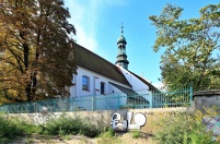 W skromnej barokowej fasadzie od strony zachodniej w niszach dolnej kondygnacji znajdują się posągi św. Piotra i Pawła. Wyposażenie wnętrza pochodzi z drugiej połowy XVIII wieku.