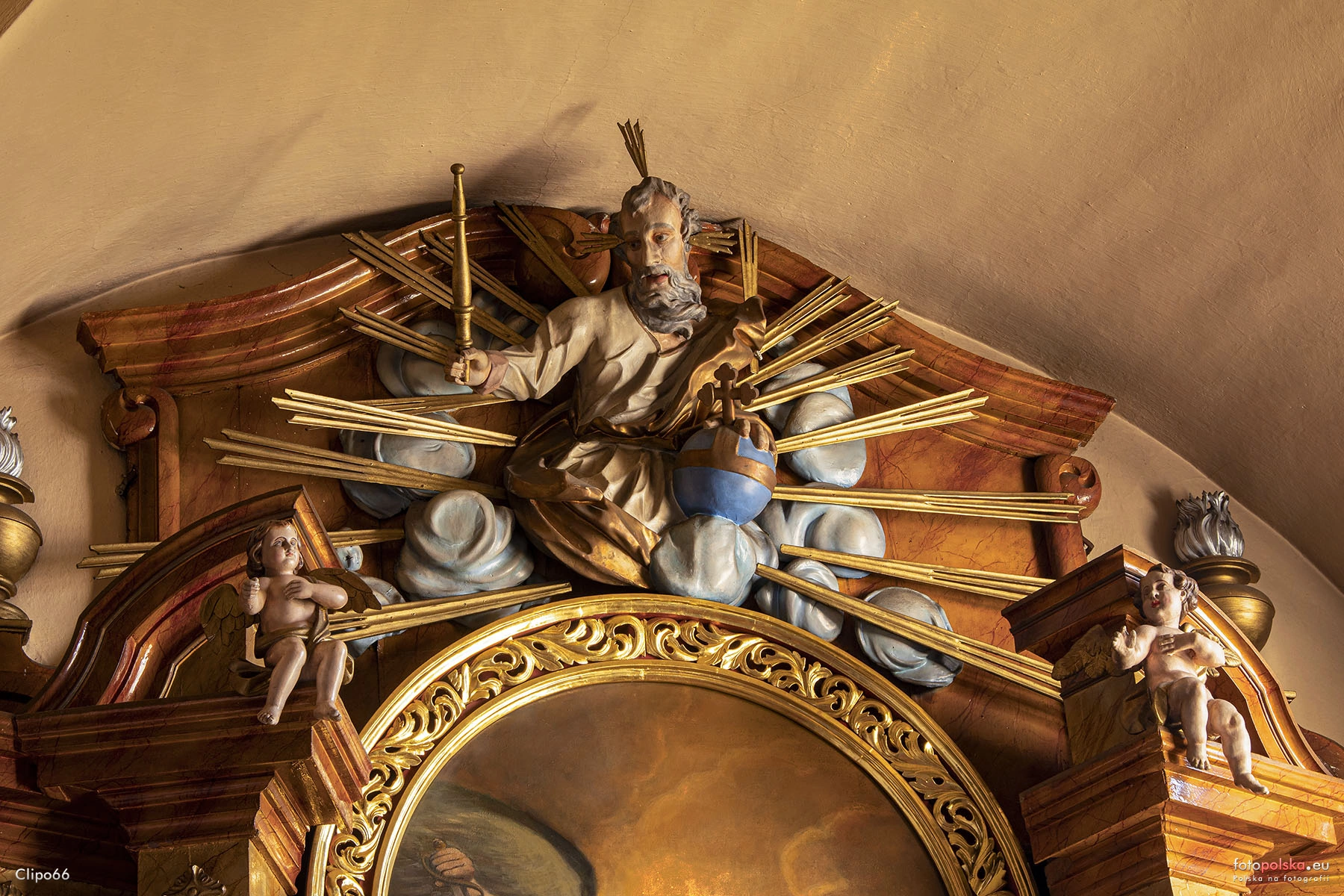 22 kwietnia 2023 , Zwieńczenie ołtarza głównego rzeźbą Boga Ojca.Skomentuj zdjęcie |