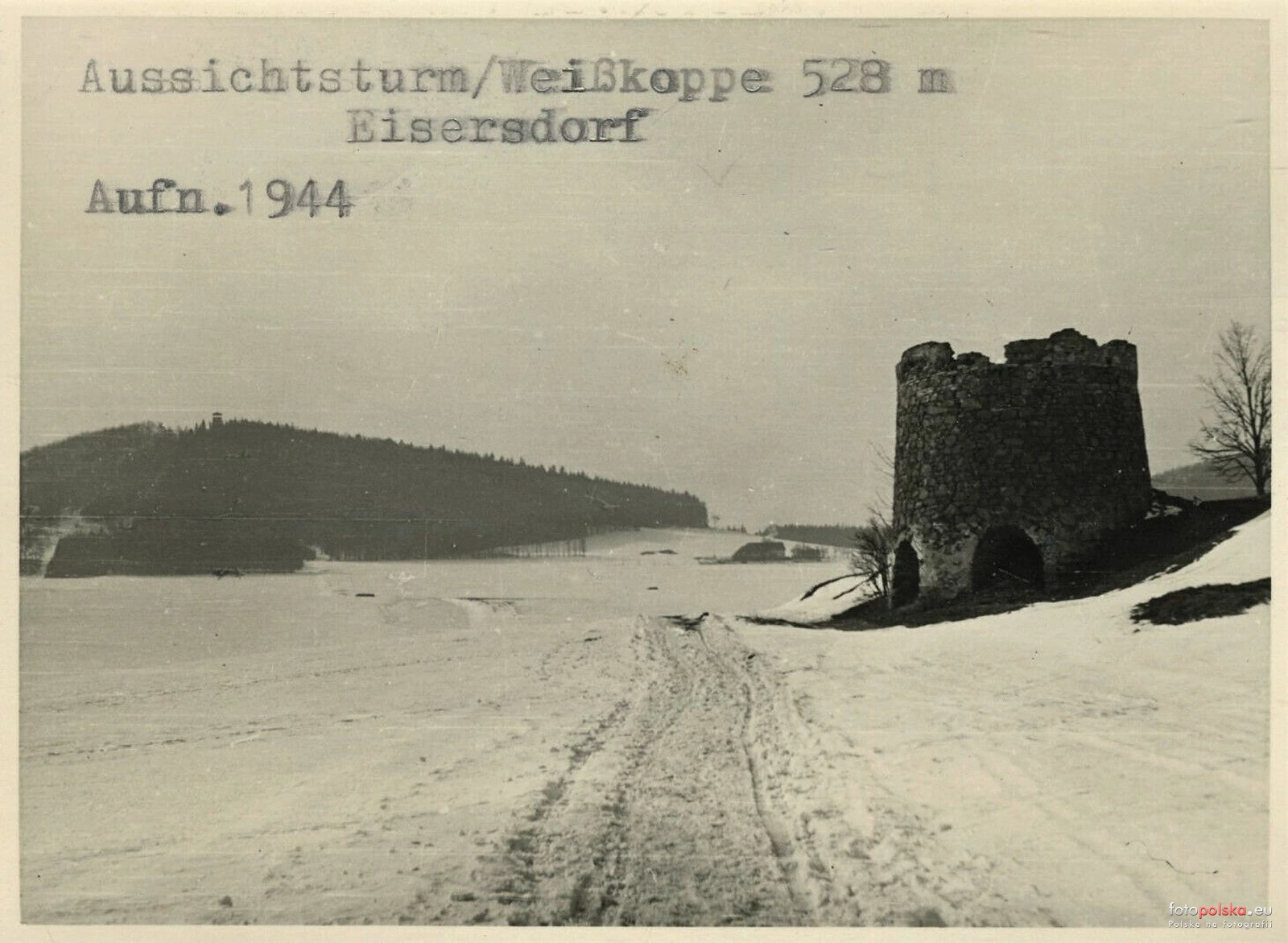 1944 , Wapiennik w Żelaźnie, w tle góra Wapniarka (niem. Weißkoppe) z dawną wieżą widokową. |