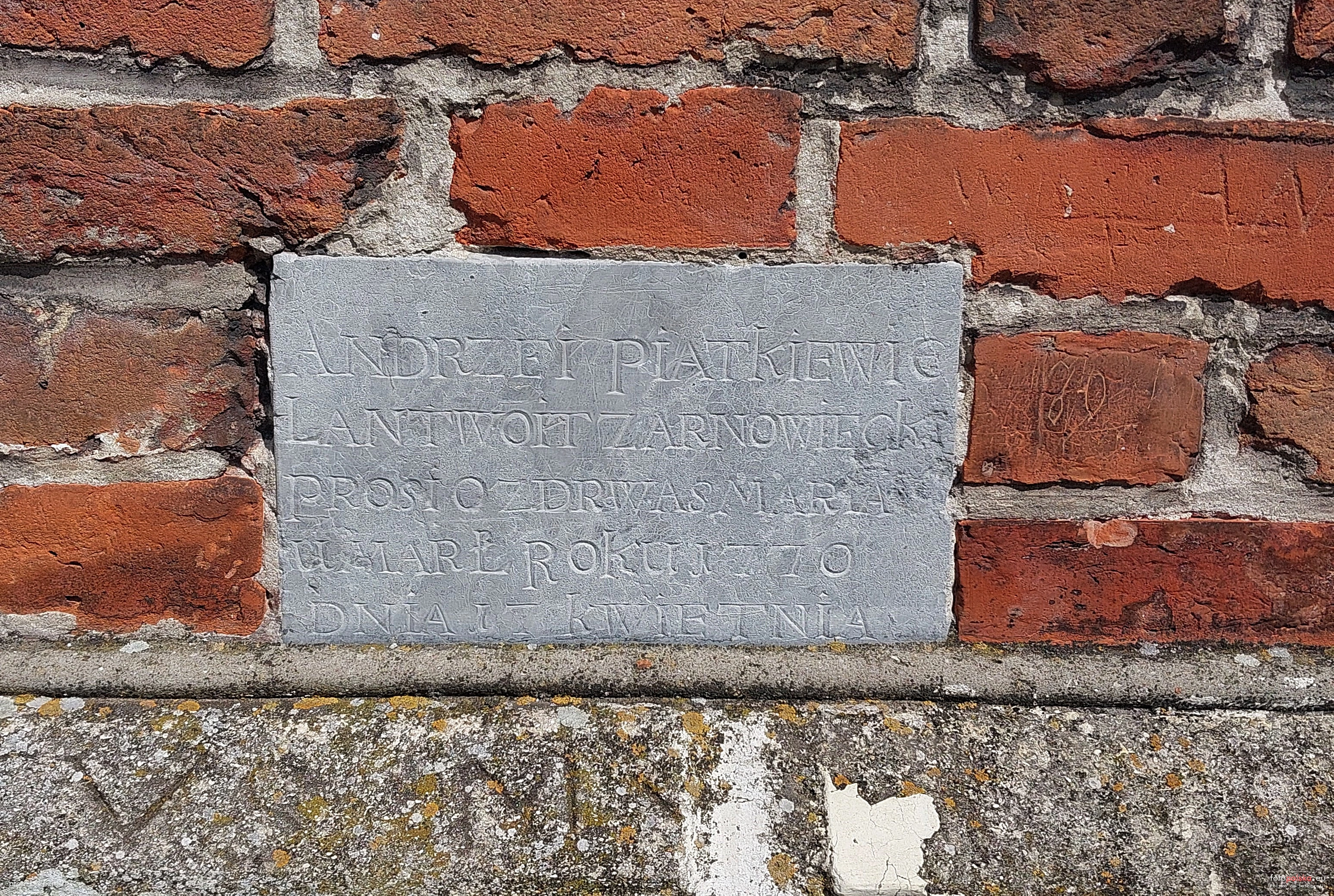 11 czerwca 2023 , Kościół Narodzenia Najświętszej Marii Panny w Żarnowcu - tablica na murze kościoła.