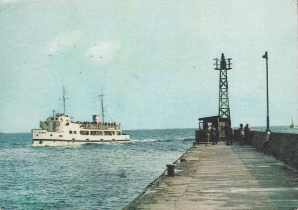 Lata 1950-1960 , Statek "Olimpia" u wejścia do portu.Skomentuj zdjęcie