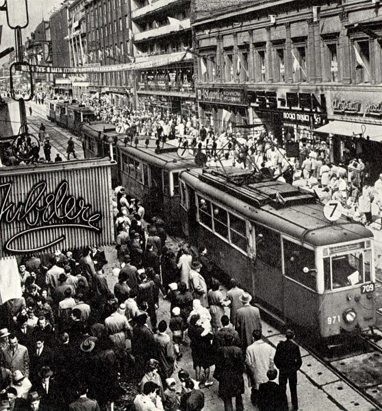 Lata 1970-1975 , Tramwaj na ul. 3 Maja. Zdjęcie z książki "Katowice, ich dzieje i kultura".Skomentuj zdjęcie |