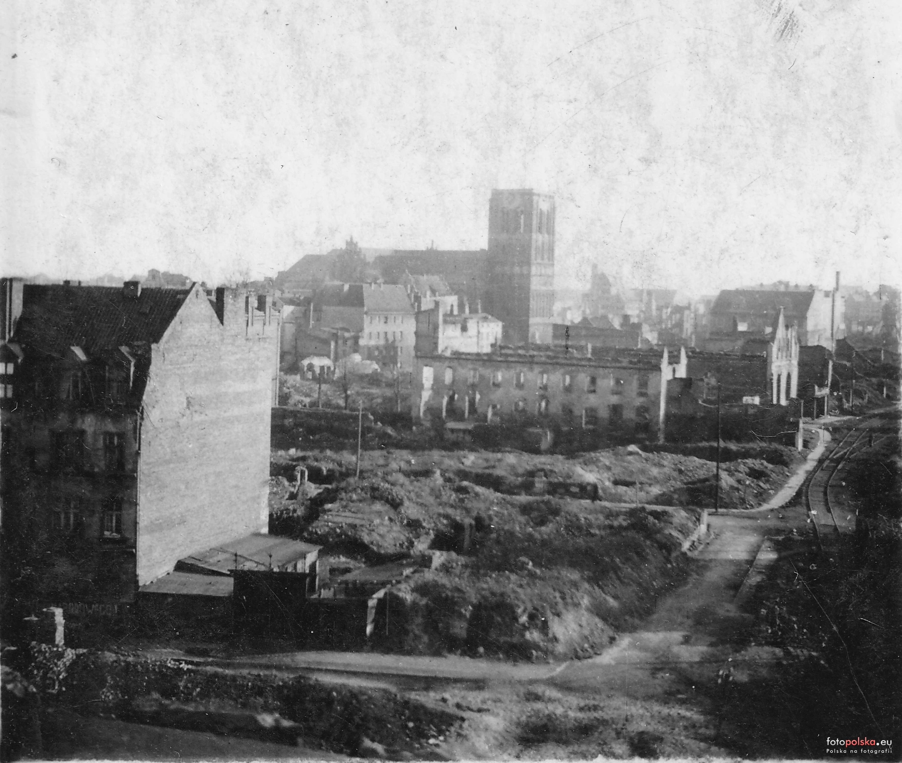 Lata 1945-1946 , Zniszczona część śródmieścia, w tle kościół Św. Jana.Skomentuj zdjęcie