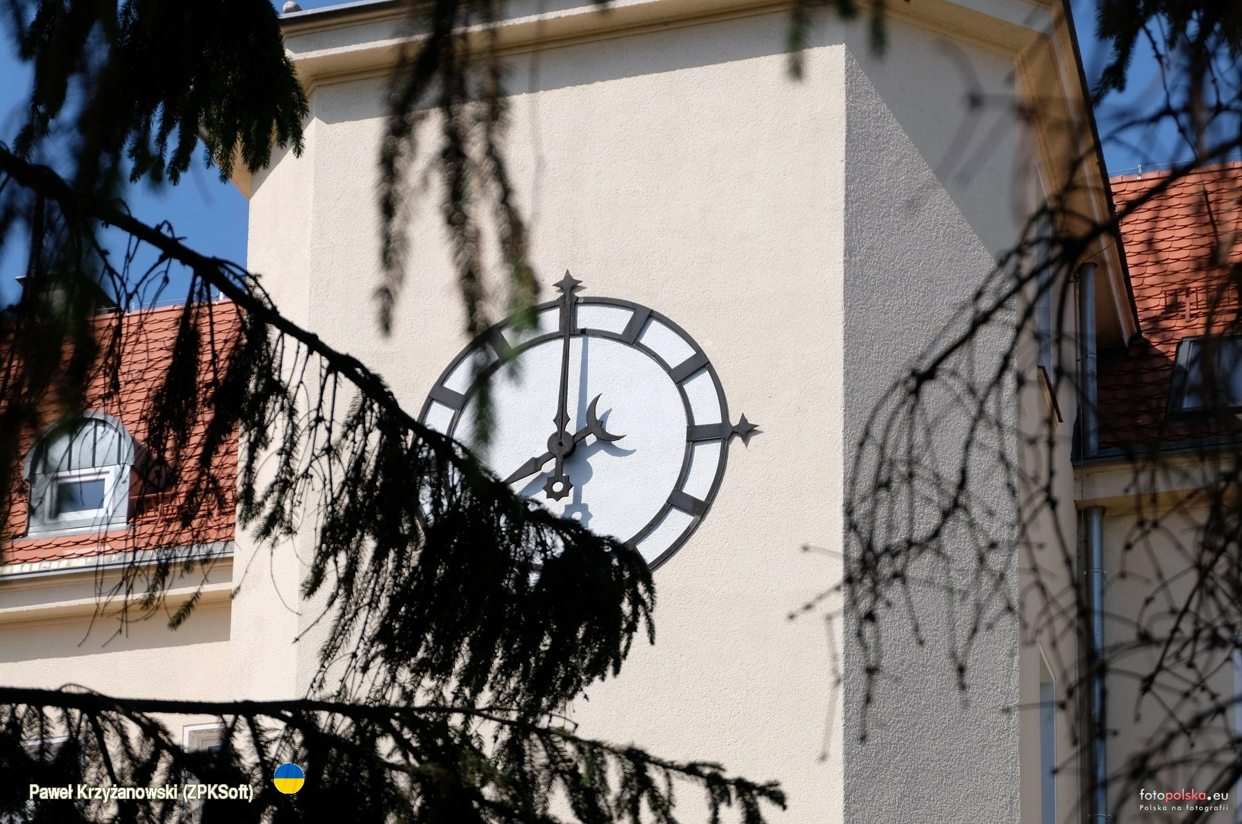 11 czerwca 2023 , Budynek SP nr 4, wzniesiony w 1929 r. Pierwotnie siedziba szkoły rolniczej. Na zdjęciu zegar umieszczony na części budynku w kształcie wieży. Tu znajduje się klatka schodowa.Skomentuj zdjęcie |