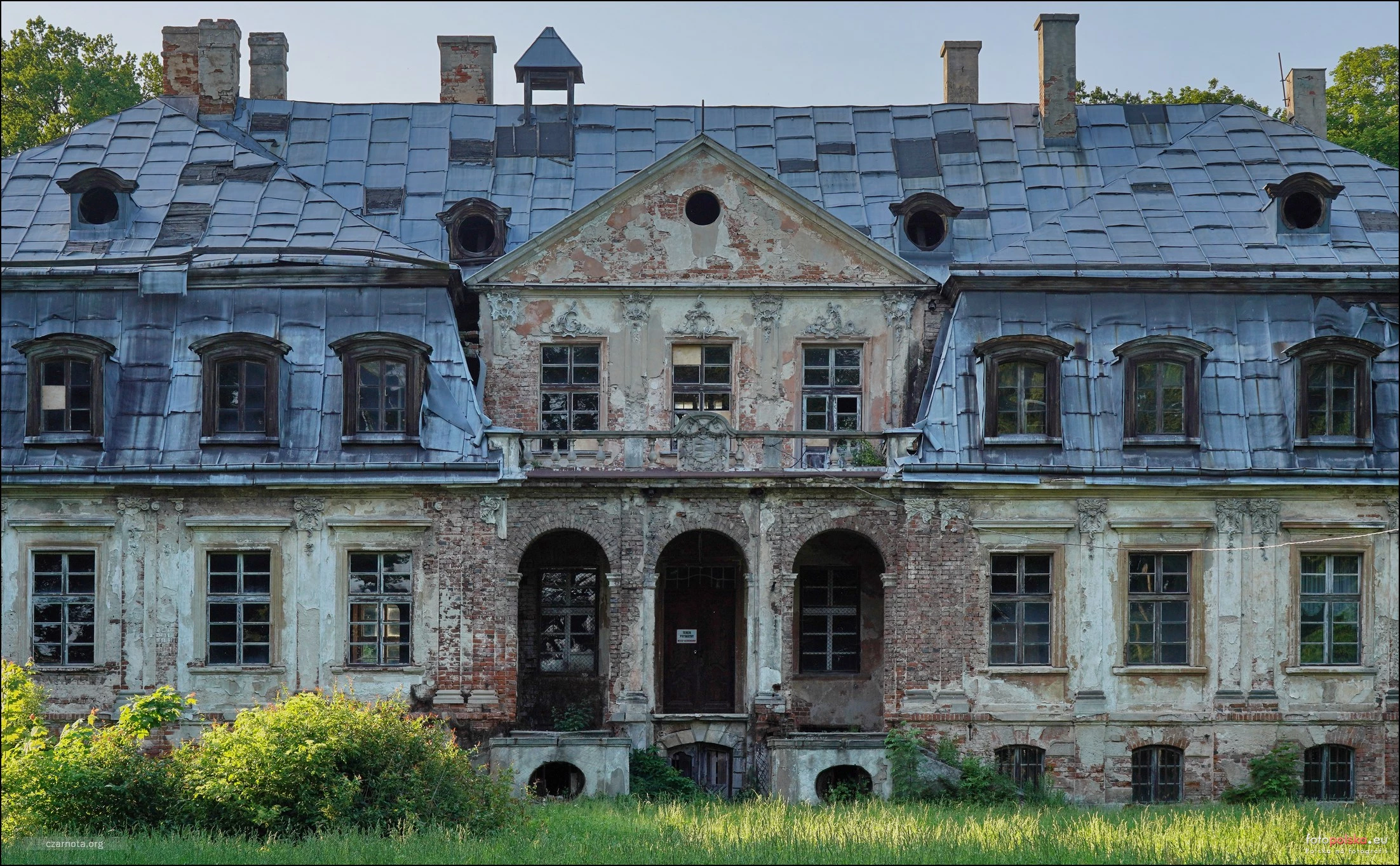 4 pobrania 1418 odsłon 6 średnia ocen Poprzednie i następne zdjęcia Maciej Czarnota Obiekty widoczne na zdjęciu Pałac więcej zdjęć (43) Zbudowano: 1765 Dawniej: Schloß Minkowsky (Seydlitzruh) Zabytek: 902/64 z 26.05.1964 i 220 z 14.07.1950 Generał pruski Fryderyk Wilhelm von Seydlitz. po 1765 r. rozpoczął wznoszenie rokokowego pałacu, nawiązującego do rezydencji w Sanssouci. Generał zmarł w 1773 r., a budowę zakończono dopiero w 1784 r. dla Wilhelminy Albertyny Mączyńskiej. Później pałac należał do rodzin von Henneberg i von Prittwitz. W 1851 r. Moryc Karol von Prittwitz sprzedał majątek hrabiemu Karolowi Aleksandrowi von Wartensleben. Rokokowy pałac przebudowany około 1900 i 1917 r. Budynek murowany z cegły, potynkowany, wzniesiony na planie wydłużonego prostokąta, na wysoko sklepionych piwnicach, parterowy, z piętrową częścią środkową, nakryty dachem mansardowym z lukarnami. Fasada (elewacja południowa) trzynastoosiowa, z centralnym wgłębionym portykiem podtrzymującym balkon. Nad trzema środkowymi osiami fasady trójkątny przyczółek. Elewacja ogrodowa jedenastoosiowa z półkolistym dwukondygnacjowym ryzalitem na osi, zwieńczonym tarasem. Od zachodu do pałacu przylega dwukondygnacyjne skrzydło gospodarcze, przebudowane na budynek mieszkalny. Elewacja wschodnia przekształcona w 1917 r. poprzez dostawienie piętrowej przybudówki. Z elewacji budynku w znacznym stopniu odpadły tynki i ozdobne detale. Pozostały fragmenty boniowania, prostokątne obramowania otworów okiennych, pojedyncze i podwójne pilastry z głowicami o rokokowej dekoracji, jońskie pilastry w wielkim porządku na ryzalicie w elewacji ogrodowej, kartusze herbowe nad wejściem w fasadzie i elewacji północnej. Wnętrza w układzie dwutraktowym, z salonem i sienią z klatką schodową na osi. Piwnice sklepione żaglasto, w pozostałych pomieszczeniach sufity z dekoracją fasetową. Z dawnego wyposażenia wnętrz przetrwała część kominków i stolarki z XVIII w. Od północy do pałacu przylega park geometryczny, przecięty kanałem. W parku znajduje się neogotycka kaplica grobowa z 1873 r. W części krajobrazowej parku romantyczne ruiny i grobowiec generała von Seydlitza. Na północny zachód od rezydencji dawny folwark z budynkami z XIX w. usytuowanymi wokół dziedzińca gospodarczego. Pałac wraz z częścią parku jest własnością prywatną, teren ogrodzony, budynek można zobaczyć tylko z zewnątrz.. Zespół pałacowy w Minkowskim został wpisany do rejestru zabytków: pałac nr rej.: 220 z 14.07.1950 r. oraz 902/64 z 26.05.1964 r., stajnia nr rej.: 902/64 z 26.05.1964, park nr rej.: 187 z 31.05.1950 r. i 57/81 z 13.07.1981 r. |
