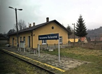 18 listopada 2018 , Budynek dworcowy widoczny od strony torów. Widok w kierunku Zagórza. Tablica z nazwą stacji.Skomentuj zdjęcie |