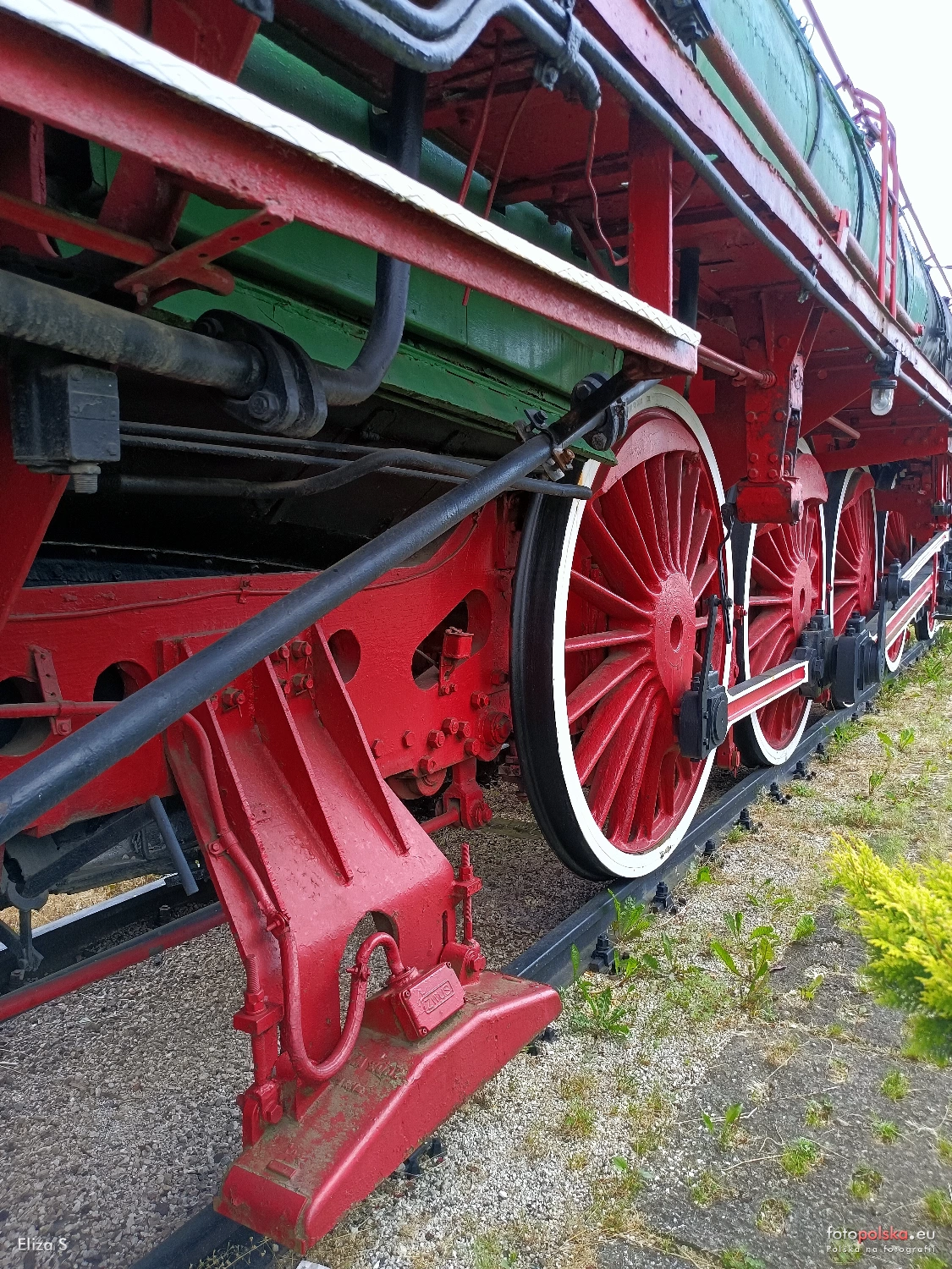 26 czerwca 2023 , Pomnik-Parowóz Pt47-157, fragment parowozu, detale konstrukcji.Skomentuj zdjęcie |
