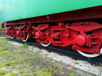 26 czerwca 2023 , Pomnik-Parowóz Pt47-157, fragment parowozu, detale konstrukcji - podwozie, tender skrzyniowy na węgiel (węglarka parowozu, skrzynia węglowa zabudowana jest w zbiorniku wody)Skomentuj zdjęcie |