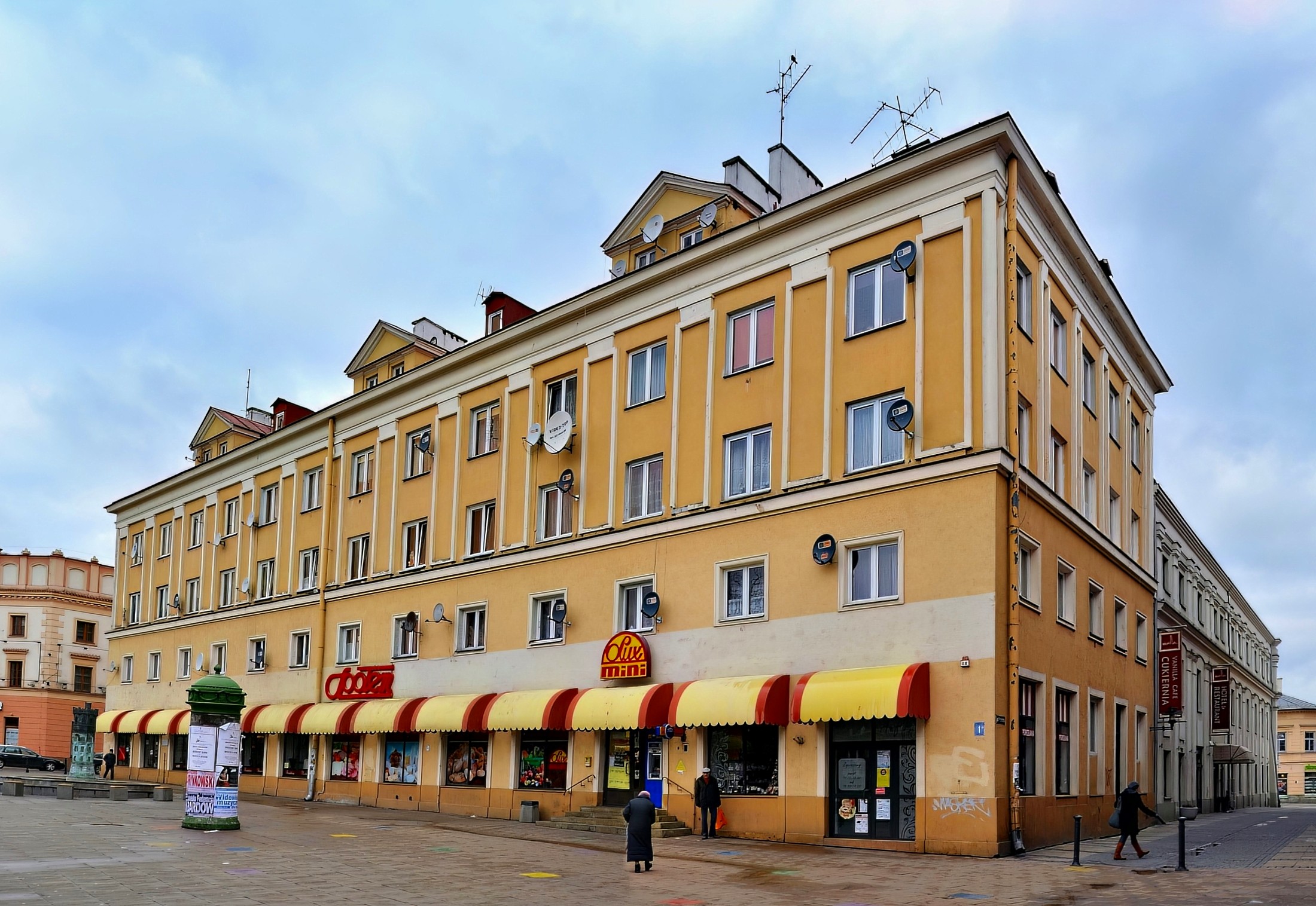Budynek w stylu modernistycznym w/g projektu architekata Tadeusza Witkowskiego z 1957 roku wybudowano w 1959 r. Budynek czterokondygnacyjny, zrealizowany w pierzei Placu Wolności, stanowi przykład nowej architektury dobrze wkomponowanej w tkankę zabytkowej zabudowy śródmiejskiej.