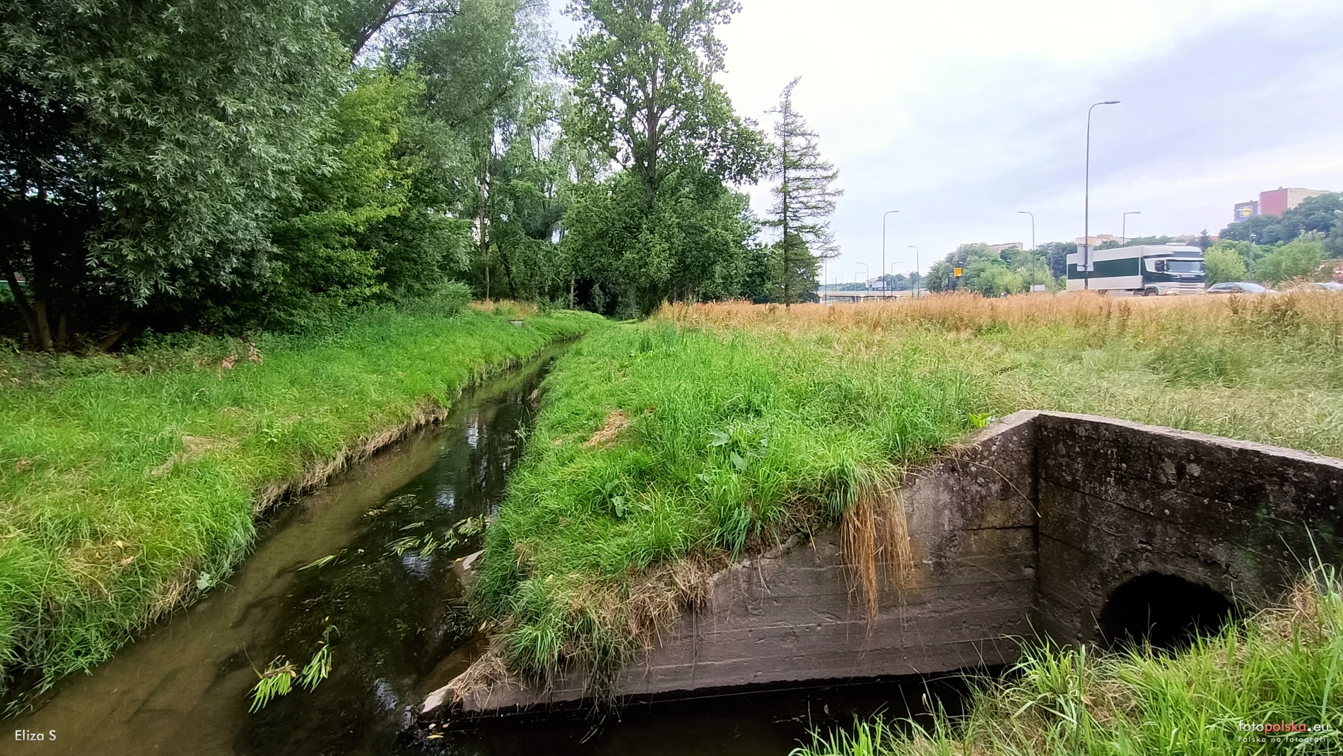 13 lipca 2023 , Rzeka Czechówka w Dzielnicy Wieniawa. między ulicami ; al. Solidarności i Czechowską. Z prawej przepust pod al. Solidarności.Skomentuj zdjęcie |