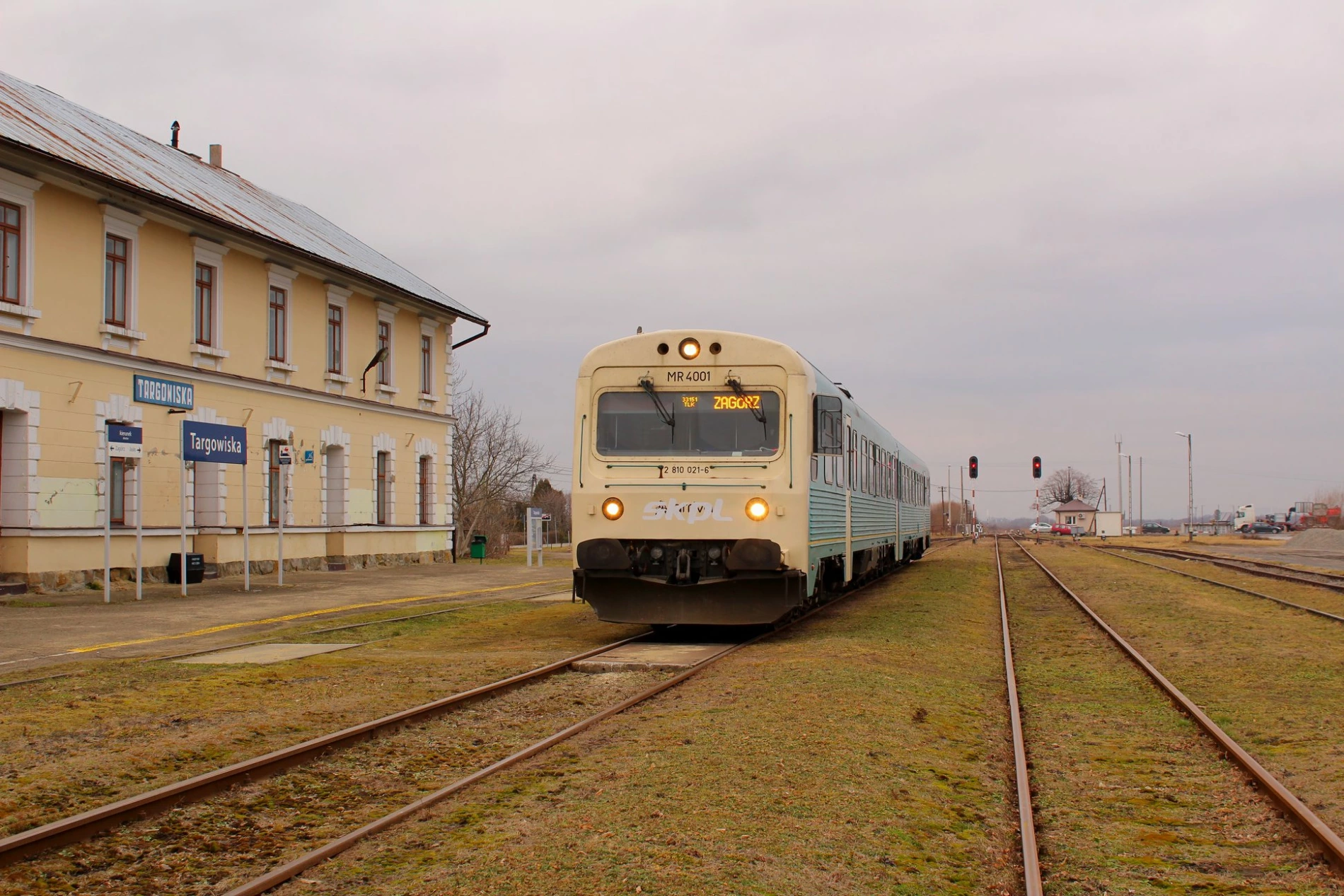15 lutego 2019 , MR 4001 "Duńczyk" jako pociąg TLK Malinowski do Zagórza uchwycony podczas postoju na stacji Targowiska. |