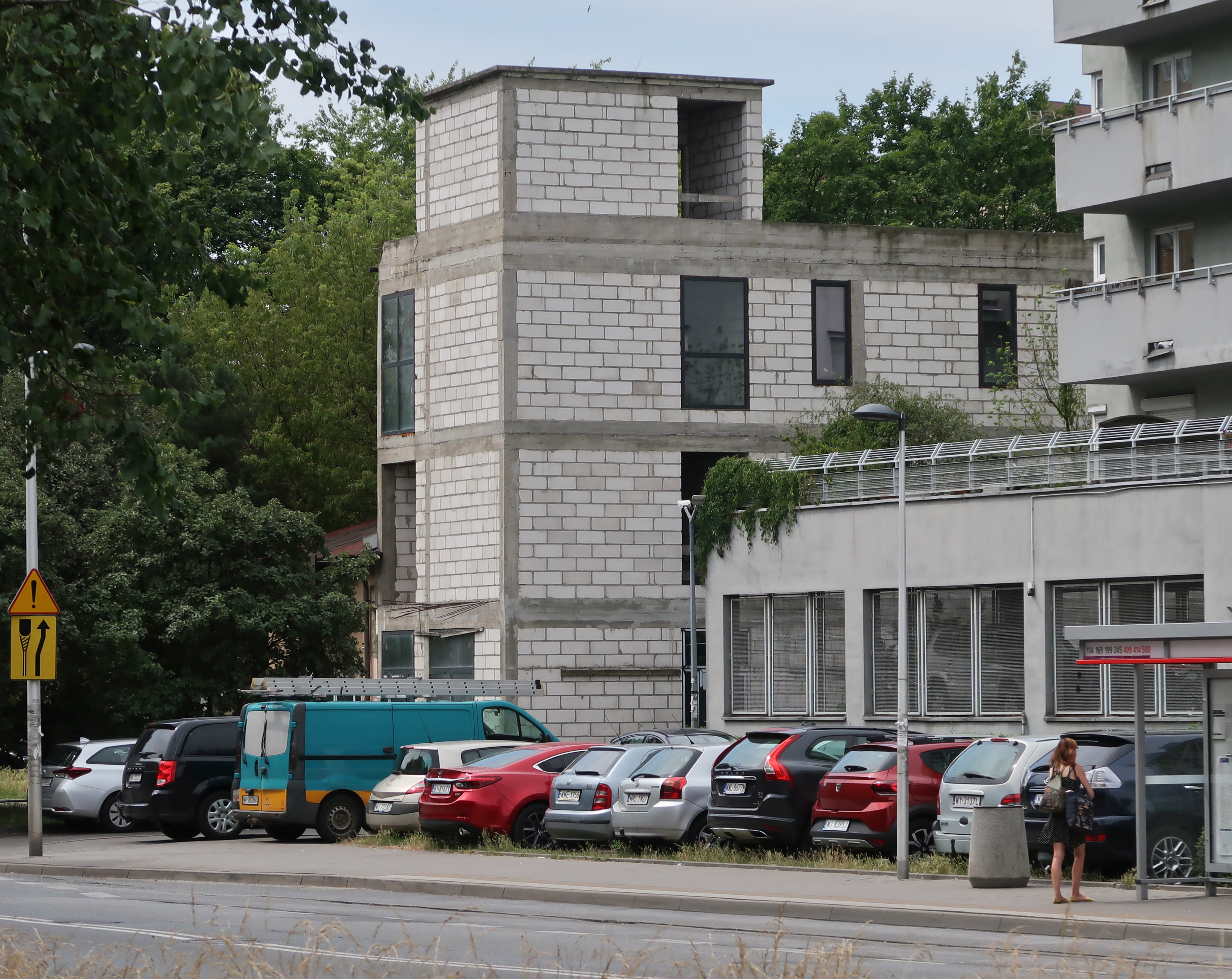12 lipca 2023 , Warszawa Bródno. Chodecka 19, niedokończony budynek. Widok od strony północno-wschodniej.Skomentuj zdjęcie