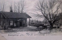 1898 , Drewniany budynek - pierwotnie leśniczówka, następnie stacja dyliżansów i gospoda; z prawej strony okazałe drzewo bukowe.Skomentuj zdjęcie |