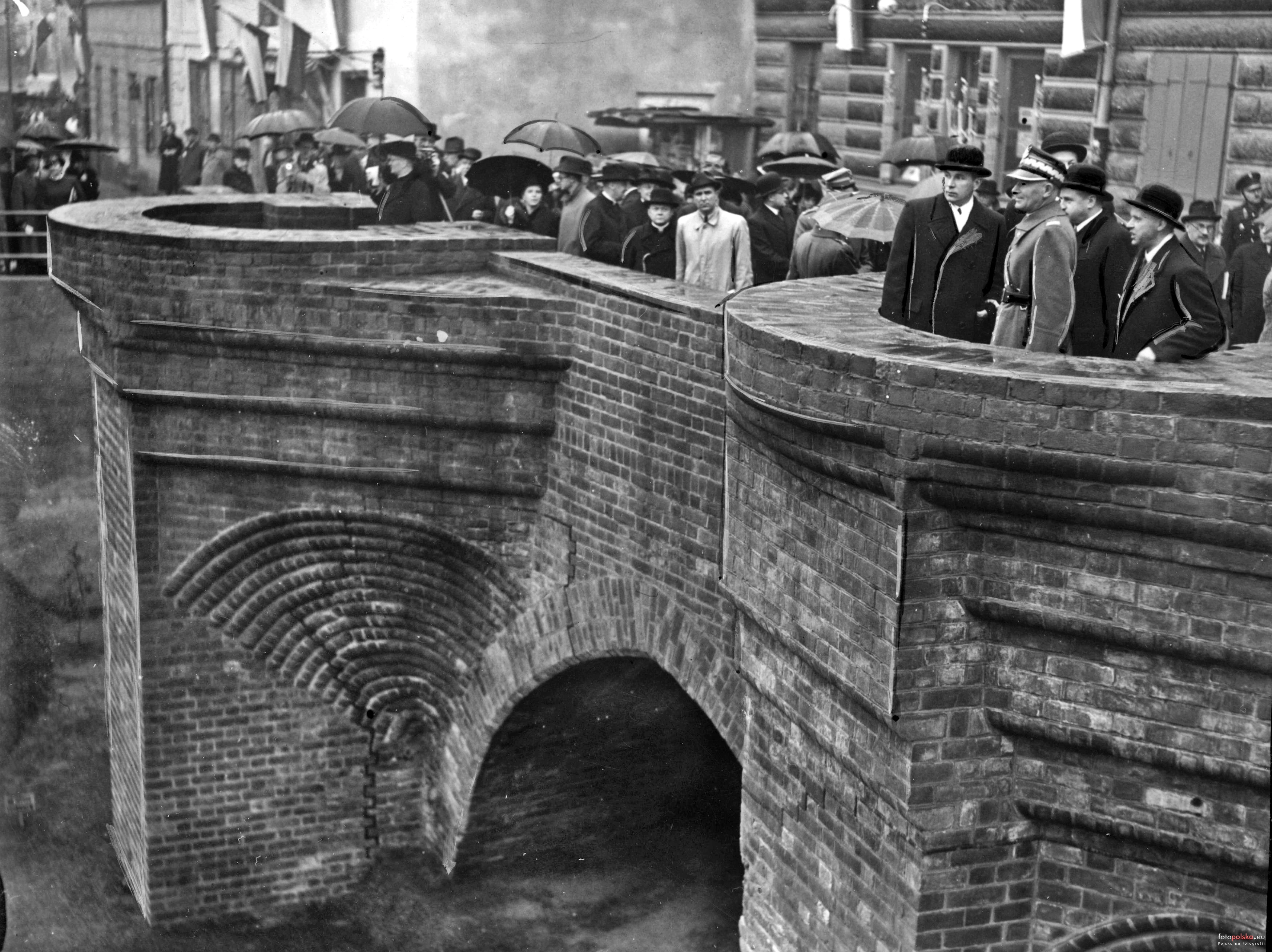 10 października 1938 , Uczestnicy uroczystości odsłonięcia murów obronnych przez marszałka Edwarda Rydza-Śmigłego. Obok widoczny Prezydent Warszawy - Stefan Starzyński.Skomentuj zdjęcie |