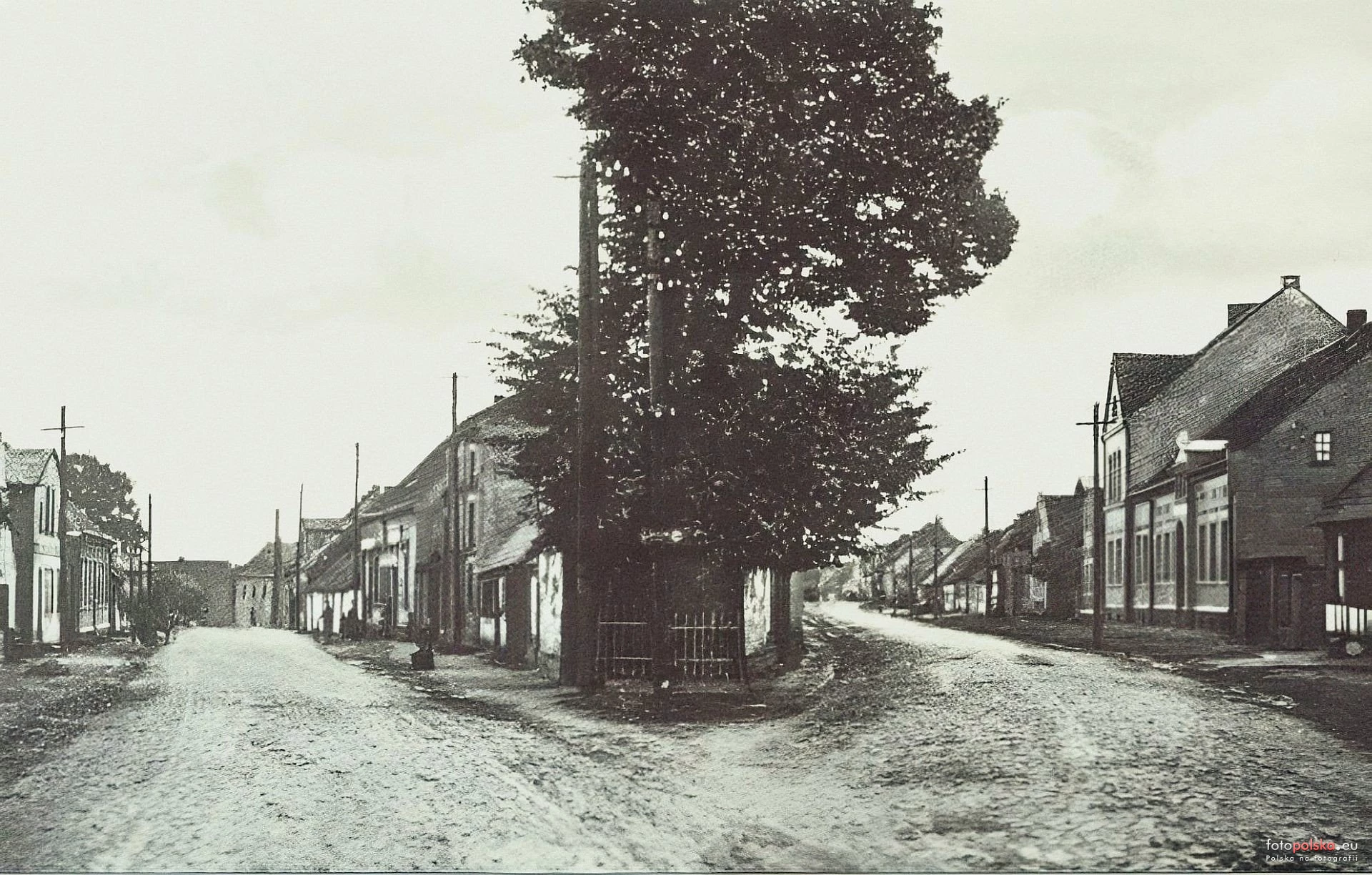 Lata 1910-1940 , Suchań - rozwidlenie dróg w miejscu zjazdu z ul. Pomorskiej w Hlonda naprzeciwko dzisiejszej szkołySkomentuj zdjęcie |