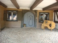 lipiec 2011 , Dom podcieniowy w Trutnowach. Widok na wejście. Po prawej stoi wiejnia.Skomentuj zdjęcie