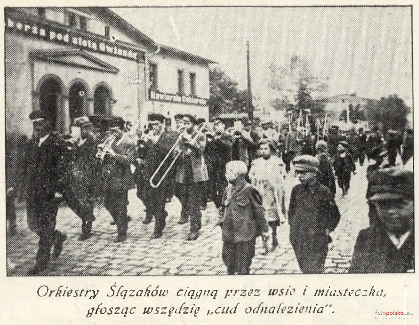 Lata 1921-1922 , Orkiestra na Placu Powstańców Śląskich przed domem z numerem 7. Źródło: Świetlica, 1938/1939, R. 2, nr 8-9Skomentuj zdjęcie