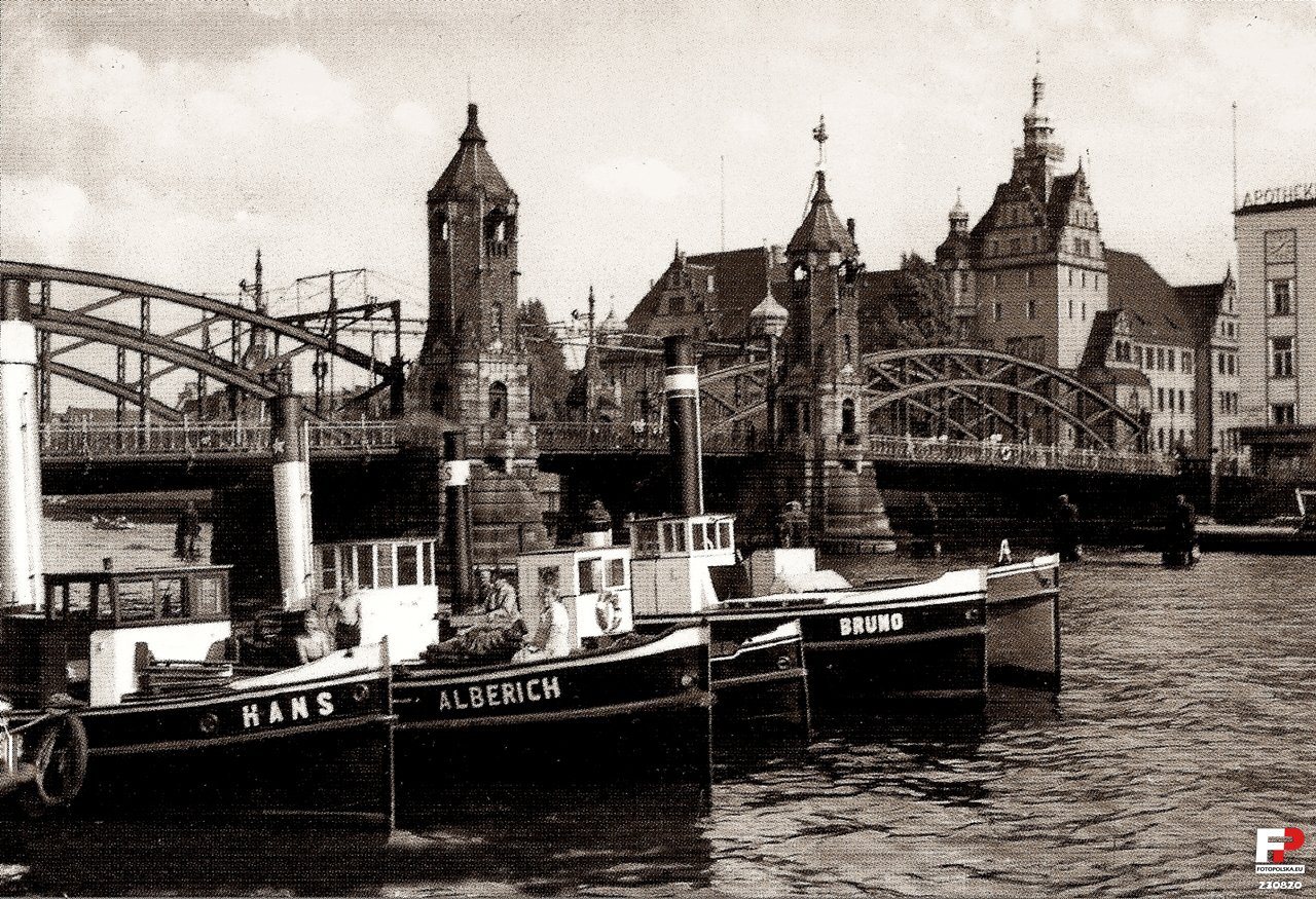 Hansabrücke (Most Hanzy) więcej zdjęć (131) Zbudowano: 1903 Zlikwidowano: 1953 Dawniej: 1945-1953 Most Sobieskiego 8 maja 1903 oddano do użytku nowoczesny most nazwany Mostem Hanzy (niem. Hansabrücke). W przeciwieństwie do poprzedniej konstrukcji był to most zwodzony. Pierwszy tramwaj kursujący po moście (linia nr 1) przejeżdżał przez niego siłą rozpędu do czasu położenia sieci trakcyjnej w 1929. Most Hanzy został wysadzony 20 kwietnia 1945 przez wycofujące się wojska Wehrmachtu.W sierpniu 1947 na filarach zniszczonego mostu położono drewnianą kładkę, którą zlikwidowano najpewniej w 1948 roku po wybudowaniu przeprawy na przedłużeniu ulicy Dworcowej. Most rozebnrano w 1953 roku.