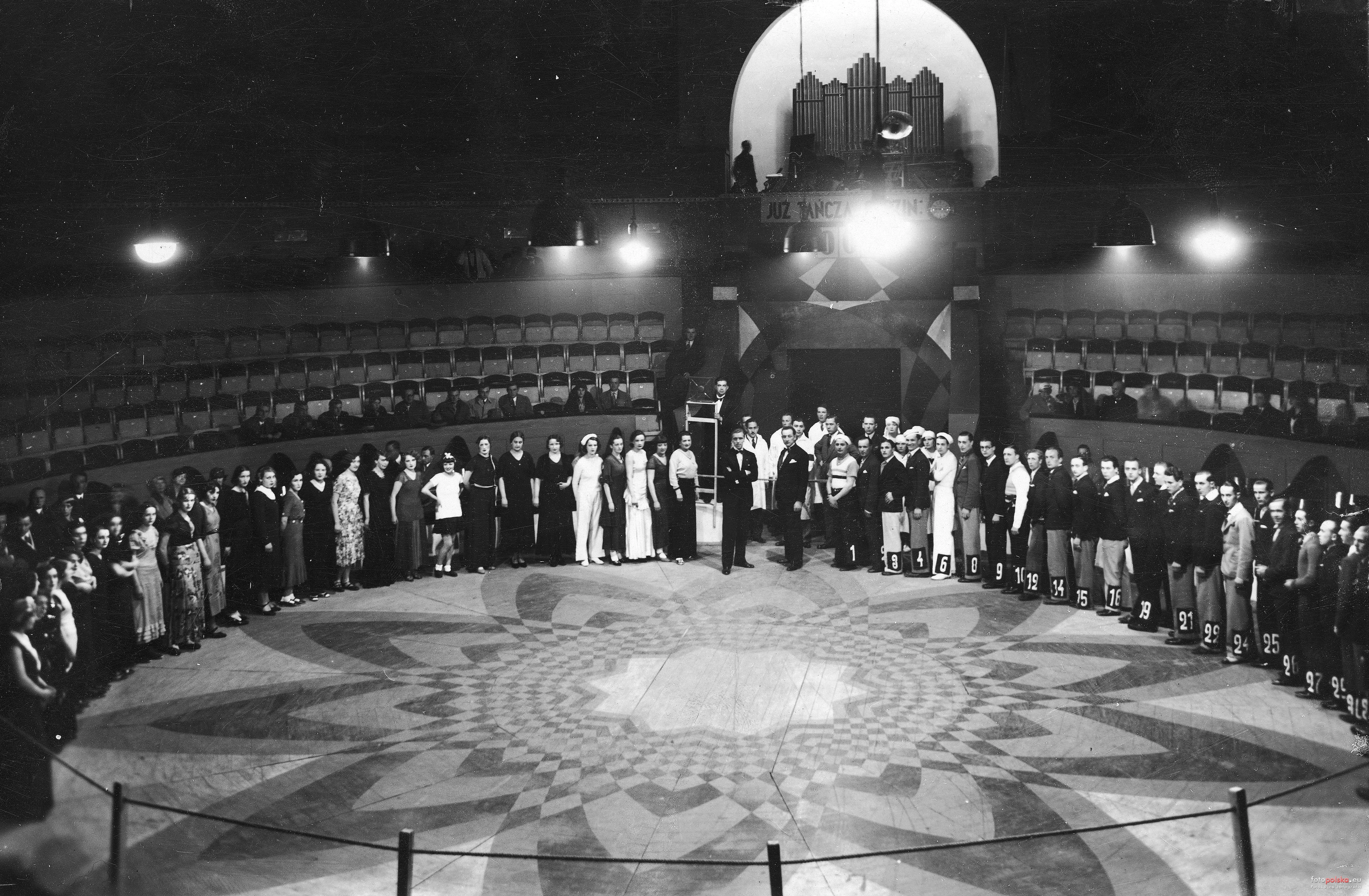 maj 1933 , Uczestnicy maratonu tanecznego na Arenie Cyrku Staniewskich. 3 maja 1933 rozpoczął się konkurs, który dziś najpewniej byłby relacjonowany przez telewizję i internet, w międzywojniu natomiast ochoczo i jaskrawie opisywały go gazety. O "makabrycznej imprezie" pisał dziennik "Czas", "Kurjer Nowogródzki" pomstował na "pastwienie się człowieka nad człowiekiem celem nikczemnej uciechy", zaś w czasopiśmie "ABC" (reklamującym się jako medium informujące "wszystkich o wszystkim") w dziesiątym dniu maratonu opublikowano notkę opatrzoną nagłówkiem "Nie dręczyć ludzi!".Skomentuj zdjęcie