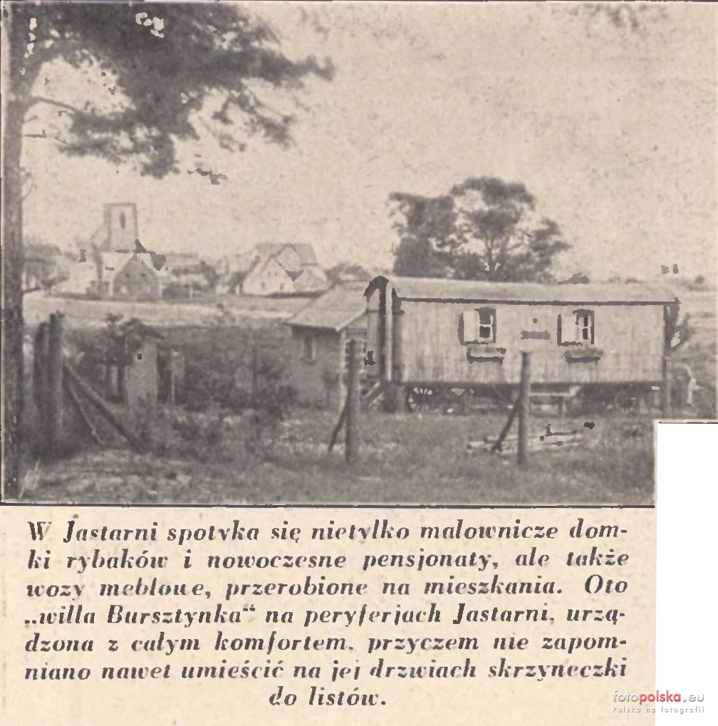 1935 , Dom z przerobionego wozu gdzieś pomiędzy ulicami Ogrodową i Kaszubską w Jastarni. Źródło: Jlustracja Polska 1935.09.15 R.8 Nr37Skomentuj zdjęcie
