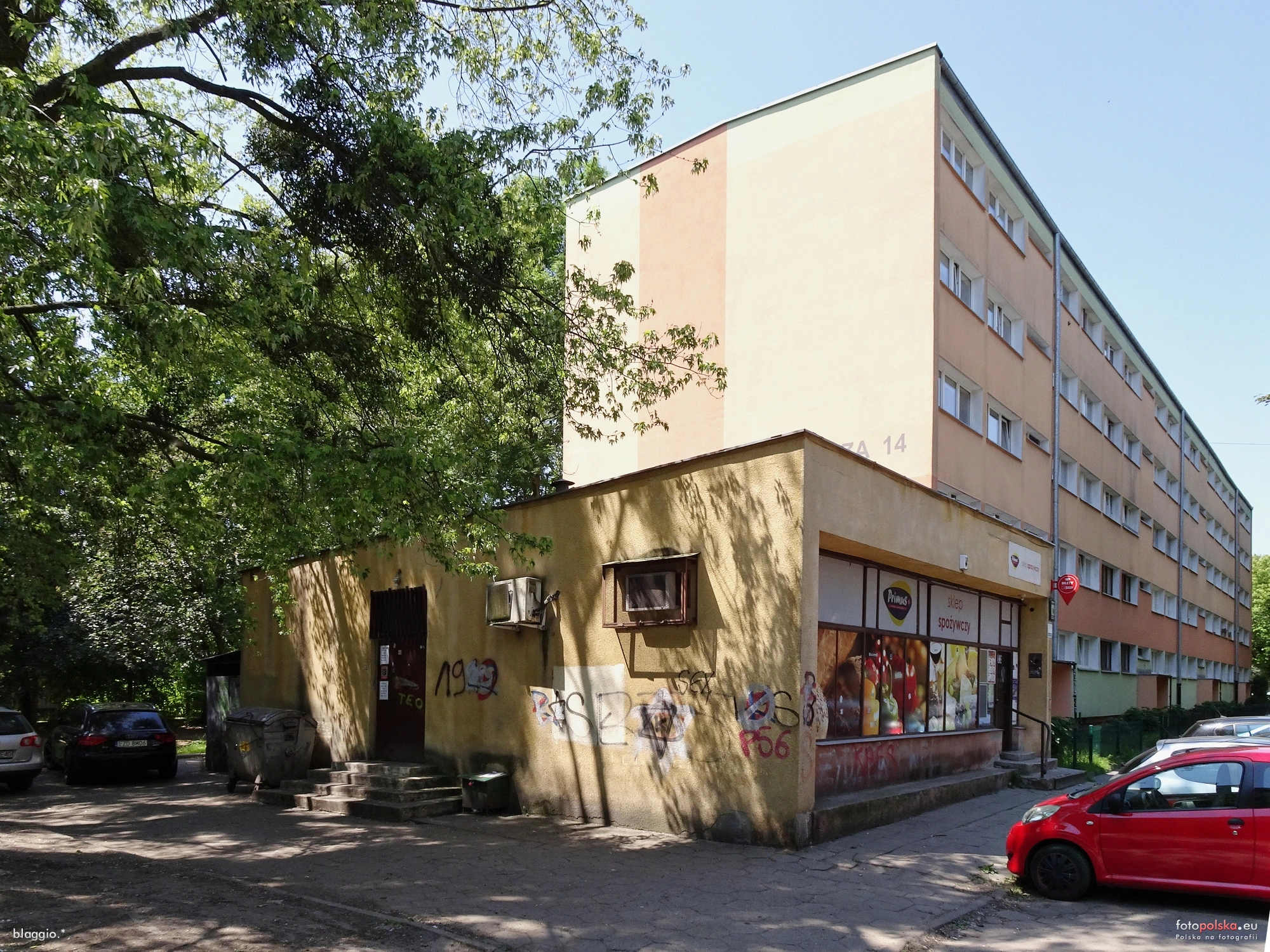 8 czerwca 2023 , Sklep spożywczy zbudowany w pierwszej połowie lat 60. razem ze stykającym się z nim blokiem mieszkalnym Woronicza 14 |
