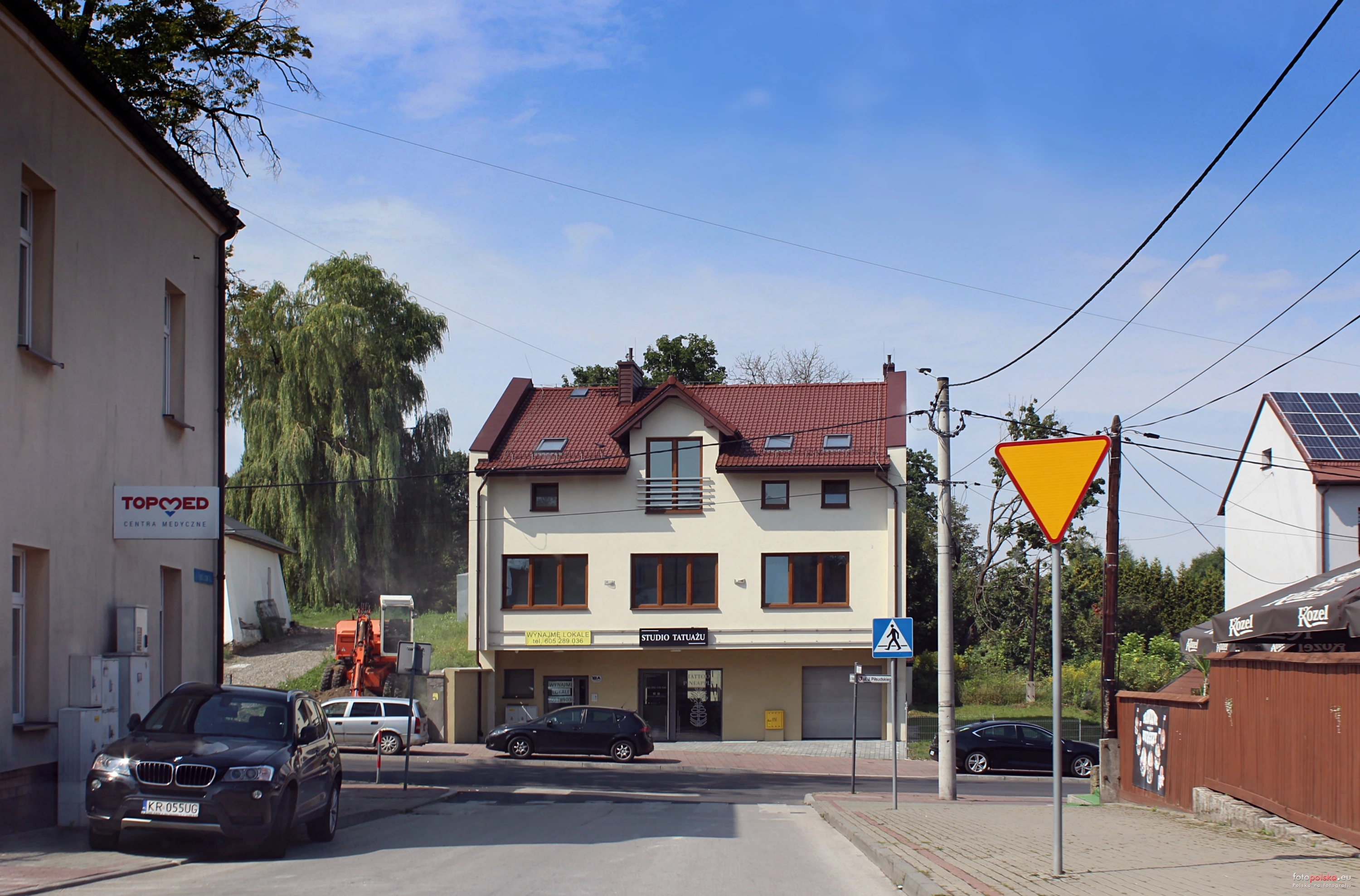 29 sierpnia 2023 , W centrum kadru widoczny budynek nr 18 przy ulicy Piłsudskiego, po lewej fragment nr 23.Skomentuj zdjęcie